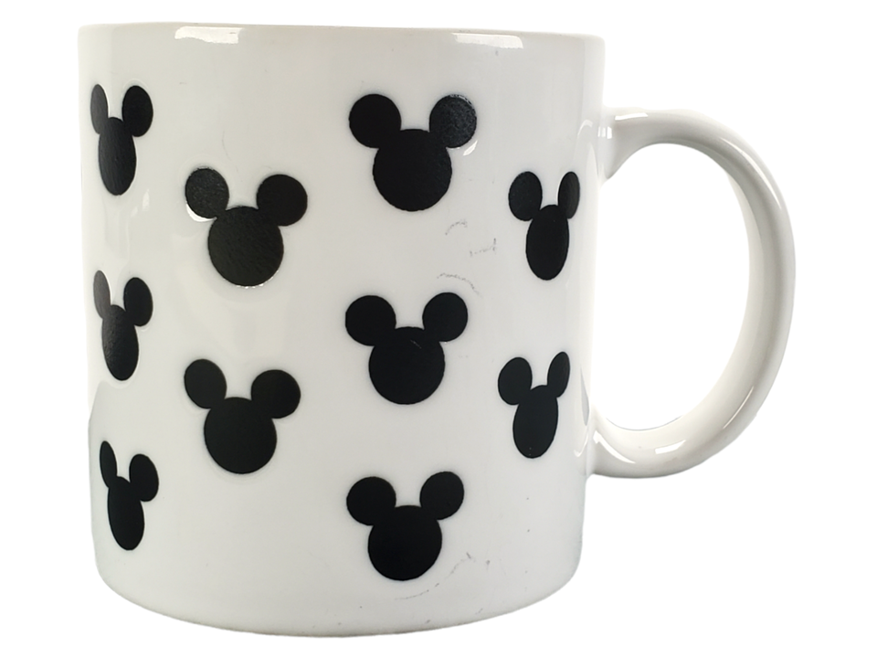 Disney Coffee Mug Cup White & Black Mickey Mouse Silhouette Ears Logo 3.5โ Tall