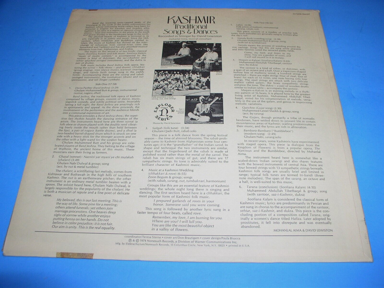 Kashmir Traditional Songs & Dances David Lewiston Record Album Vinyl Nonesuch