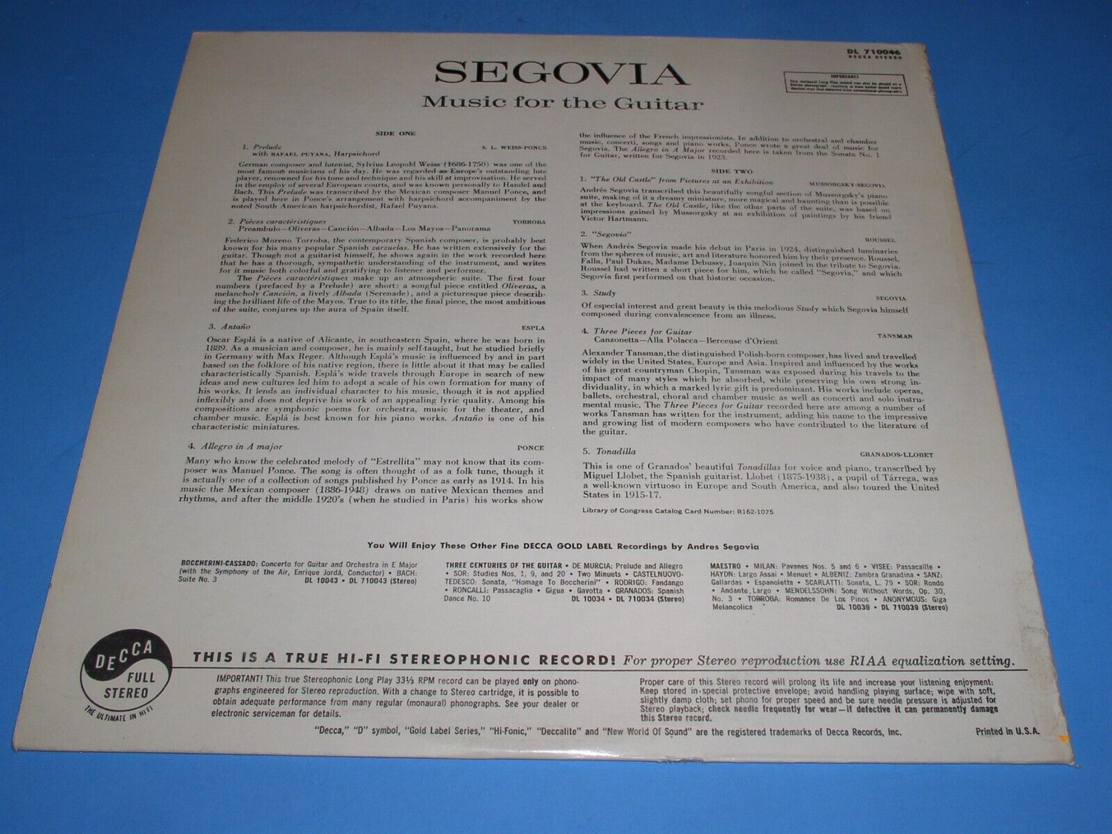 Segovia Music For The Guitar Record Album Vinyl Decca Gold Label DL 710046 MONO