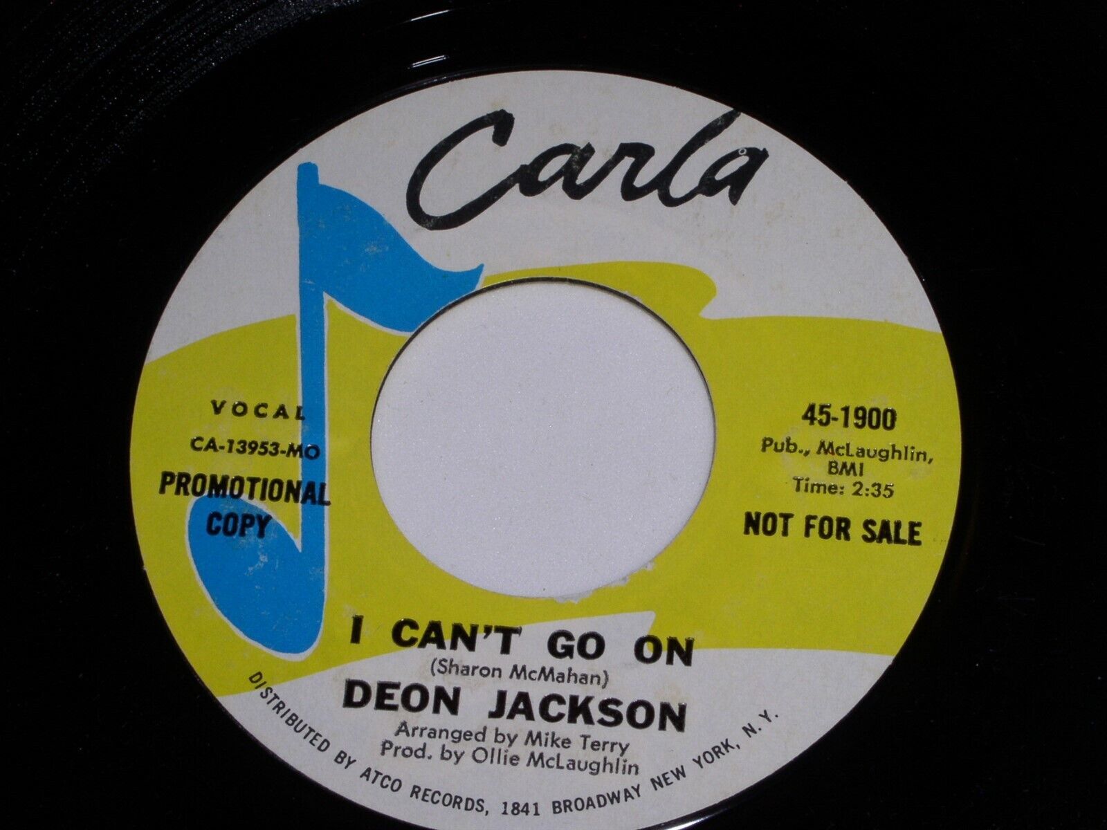 Deon Jackson I Need A Love Like Yours I Can't Go On Promo 45 RPM Record Carla