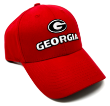 RED UNIVERSITY OF GEORGIA BULLDOGS MVP TEXT LOGO CURVED BILL ADJUSTABLE HAT CAP