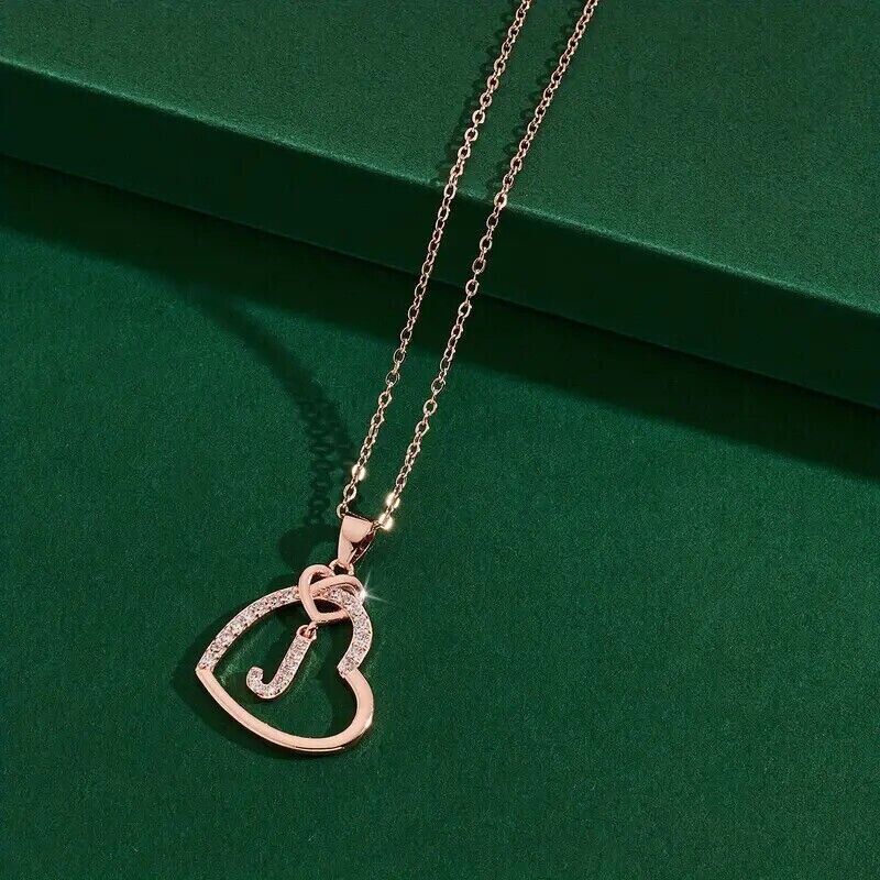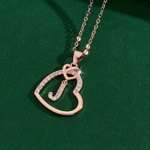 1Ct Round Cut Lab Created Diamond Heart Letter-J Pendant 14K Rose Gold Plated