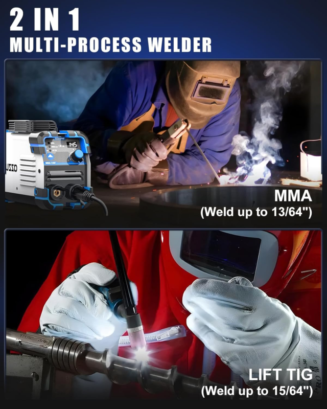 DUAL FUNCTIONALIRY (MMA LIFT TIG): AZZUNO Mini Stick Welder is a versatile powerhouse, offering both MMA and LIFT TIG welding capabilities in a single compact unit. (The lift Tig torch is not included) Whether you're welding steel or performing precision TIG welds, this welder has you covered.