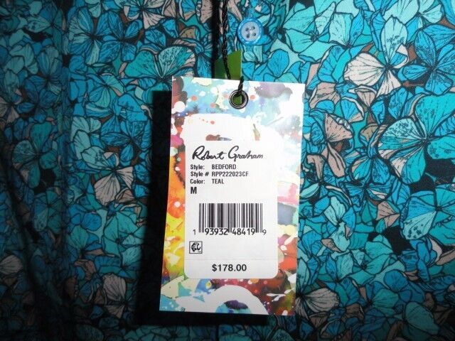 Add a pop of color to your wardrobe with this Robert Graham Bedford Teal button-up shirt. The classic fit and short sleeves make it a comfortable choice for any occasion. The shirt features a button-down collar and button closure, with a beautiful floral pattern that adds a touch of style.