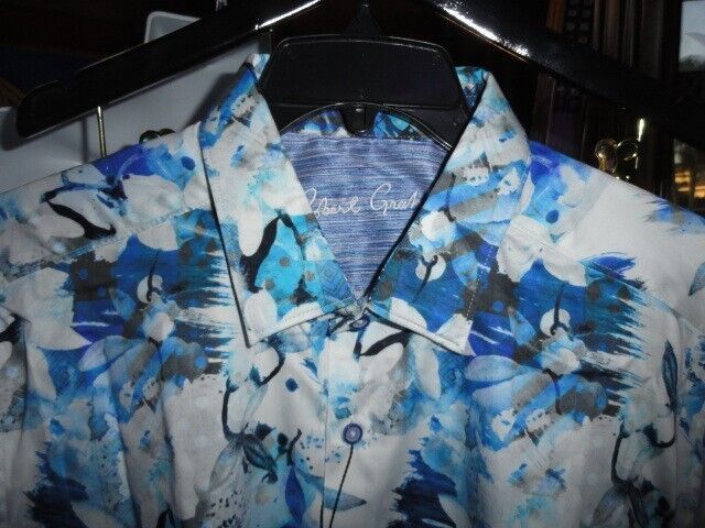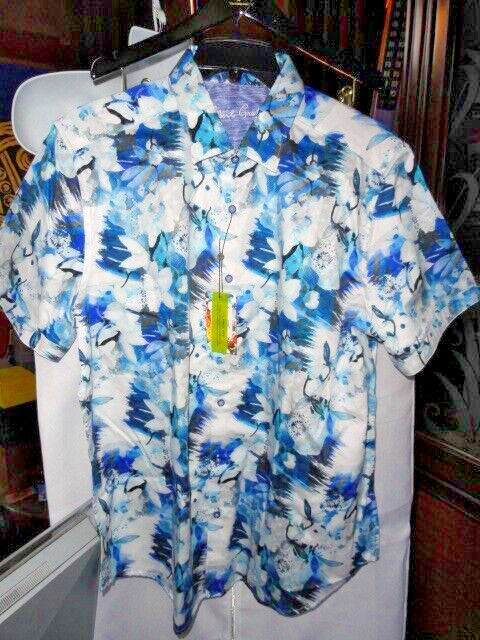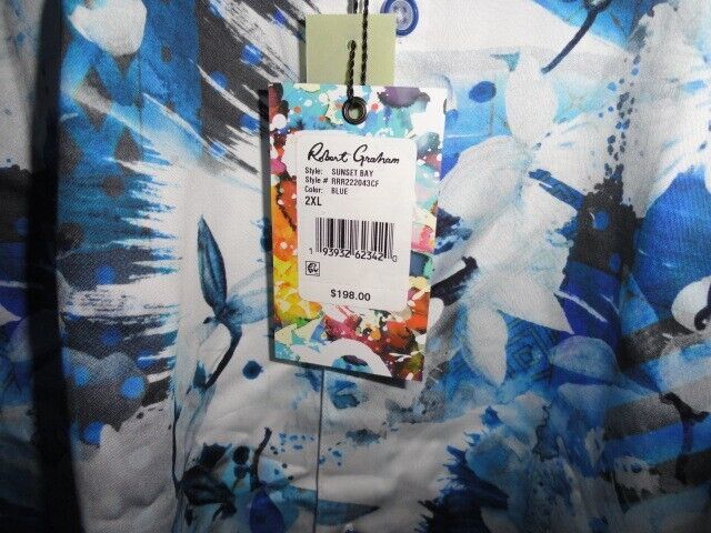 Introducing a stunning Robert Graham Sunset Bay short sleeve shirt in size 2XL, brand new with tags. This shirt is perfect for any casual occasion with its beautiful blue floral pattern and woven fabric type. The button-up style and short sleeves make it an ideal choice for men who want to stay comfortable and stylish at the same time. Whether you're going out with friends or running errands, this shirt is sure to make you look and feel good. Add it to your wardrobe today and enjoy the quality and design that Robert Graham is known for.