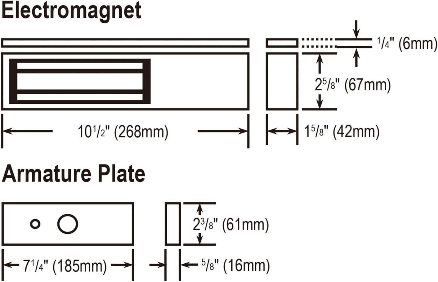 Armature dimensions: 7-1/4" x 2-3/8" x 5/8" (185 x 61 x 16 mm)