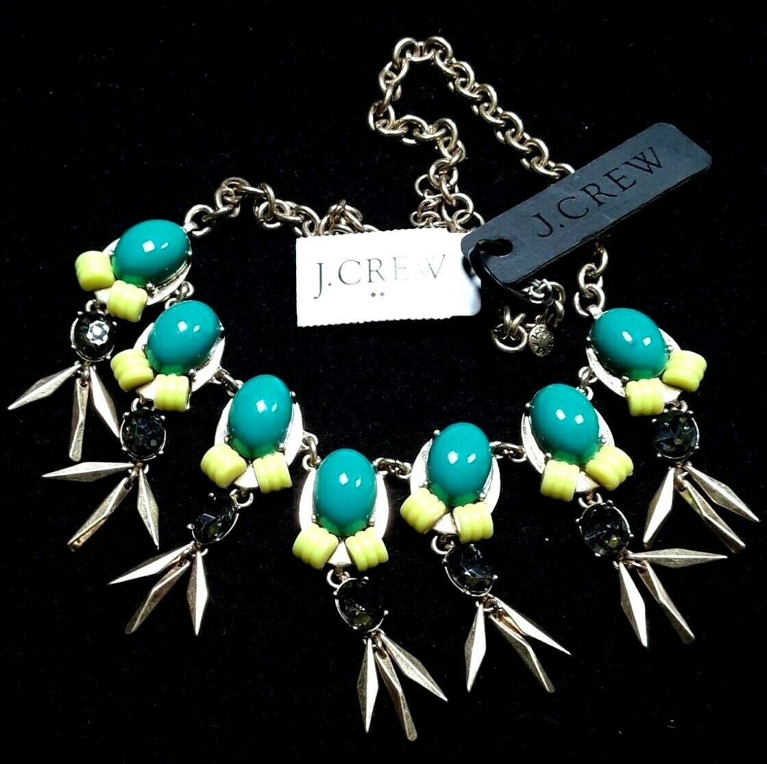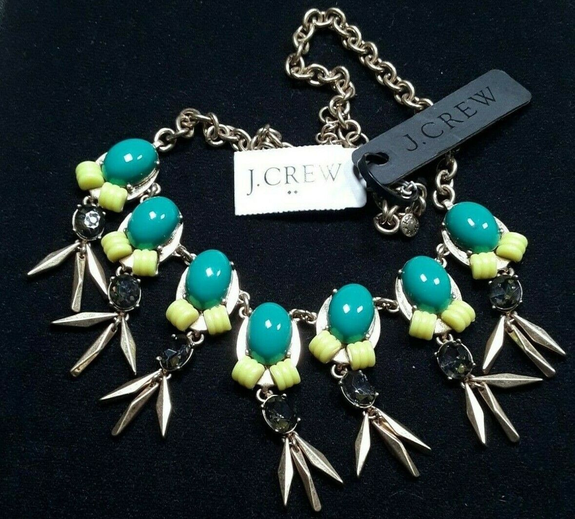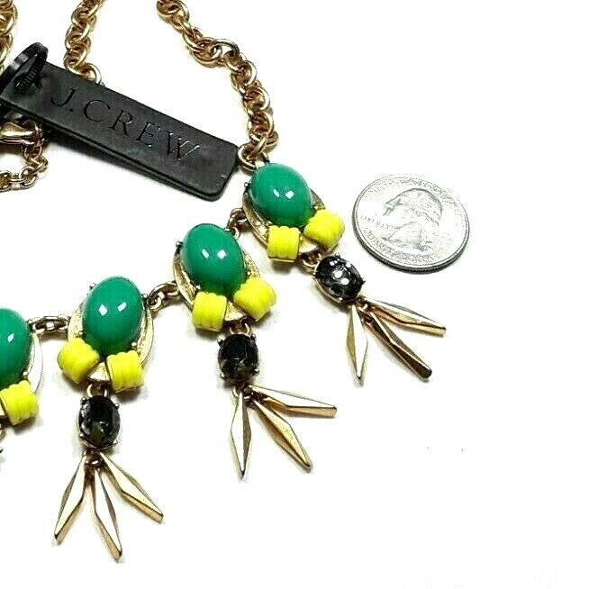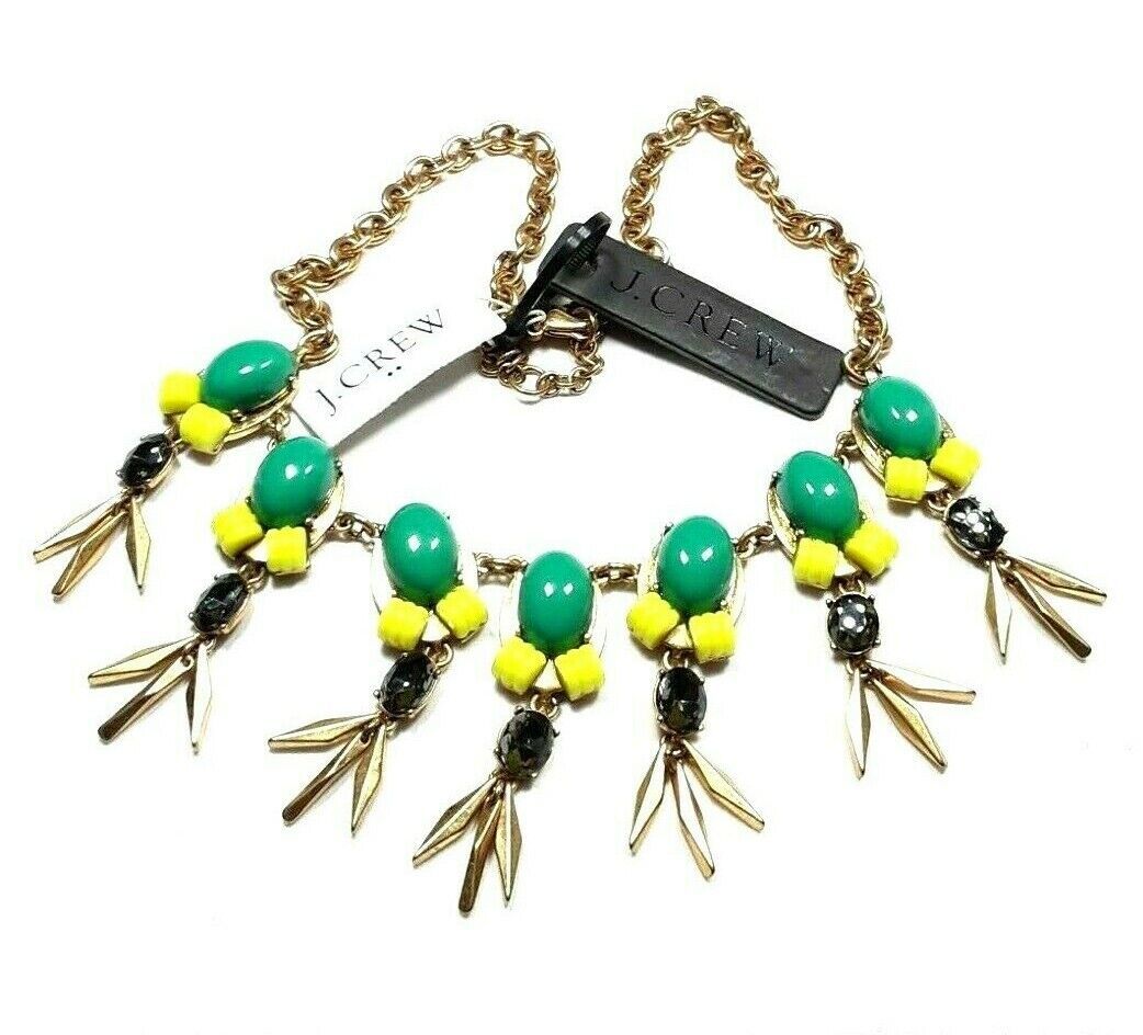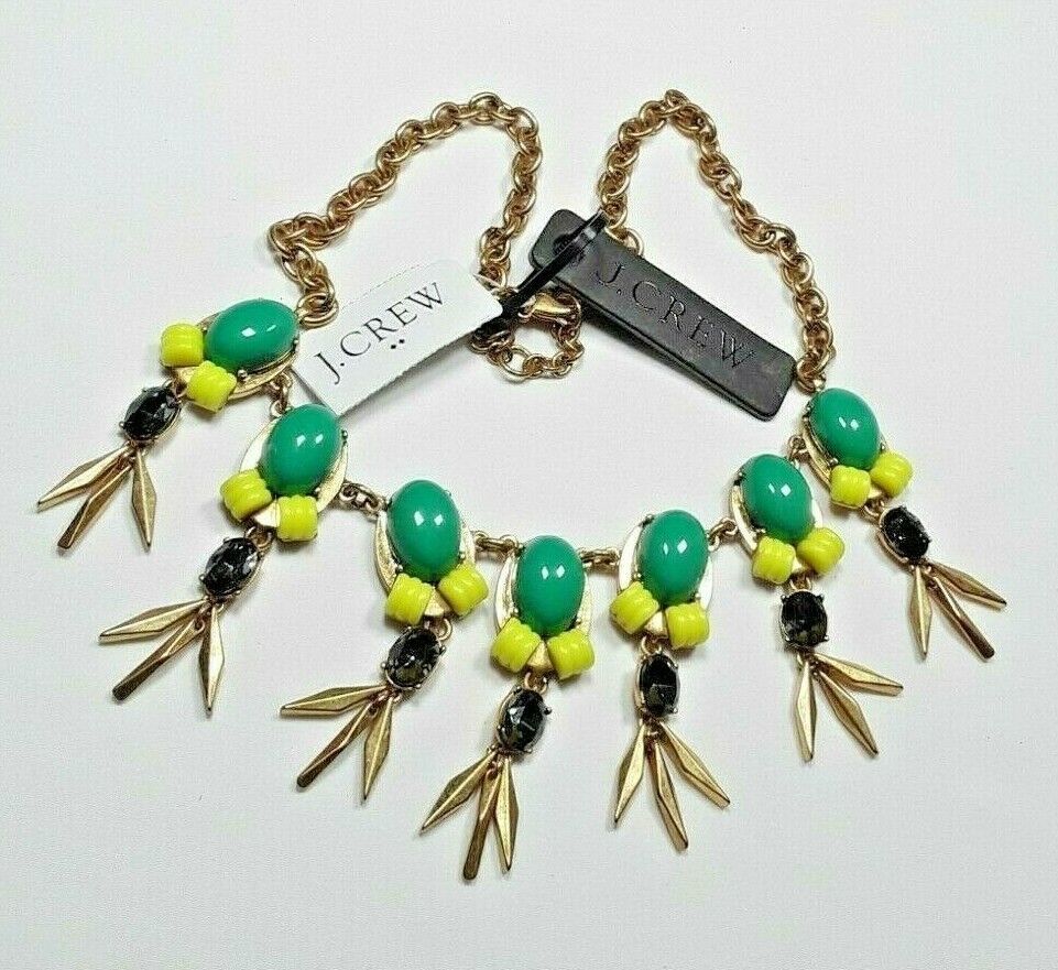 Up for sale is a beautiful J.CREW Women's Green/Yellow Statement Collar Necklace - Rhinestones, Beads, Gold-Toned Chain and Accents with the following features: