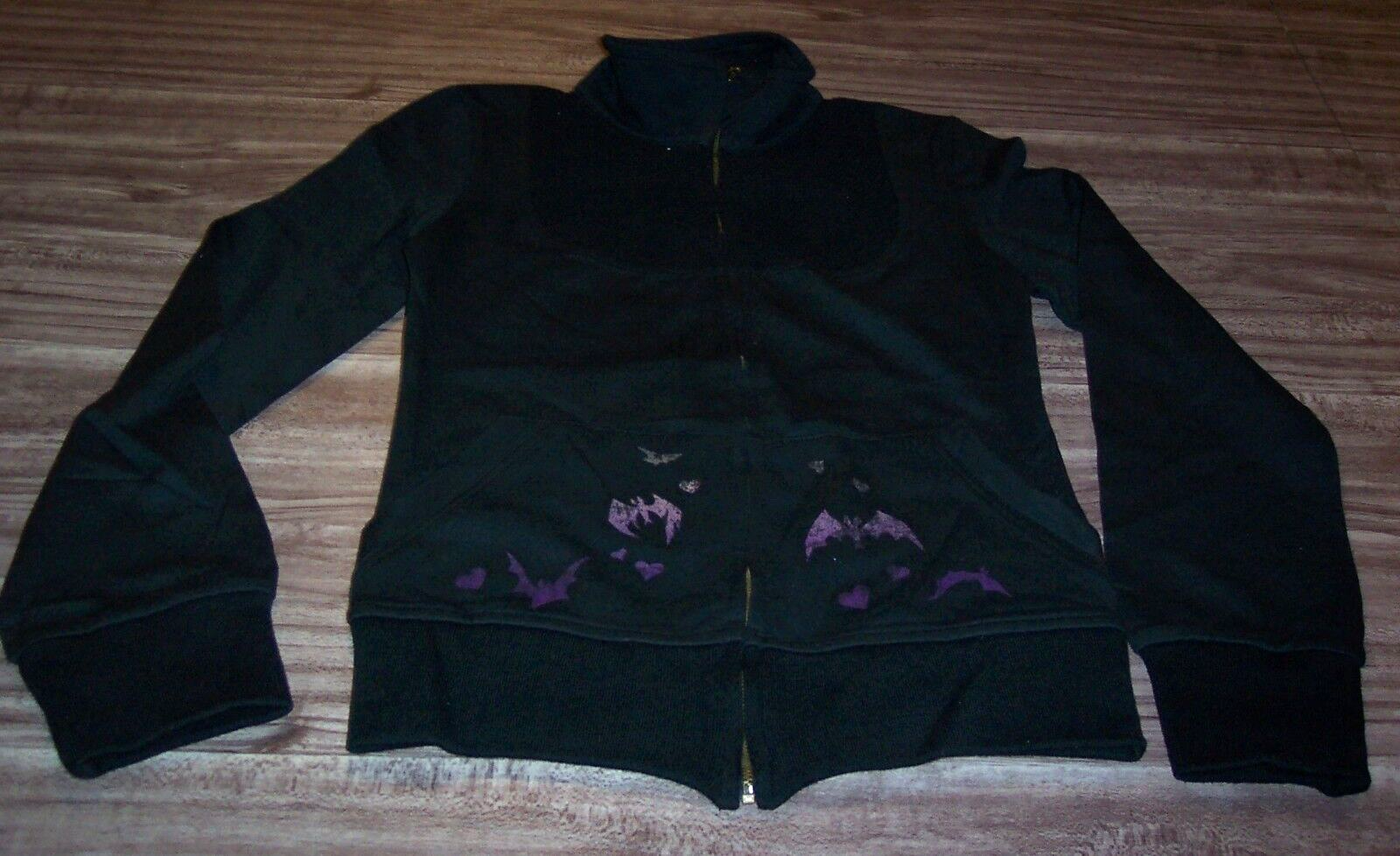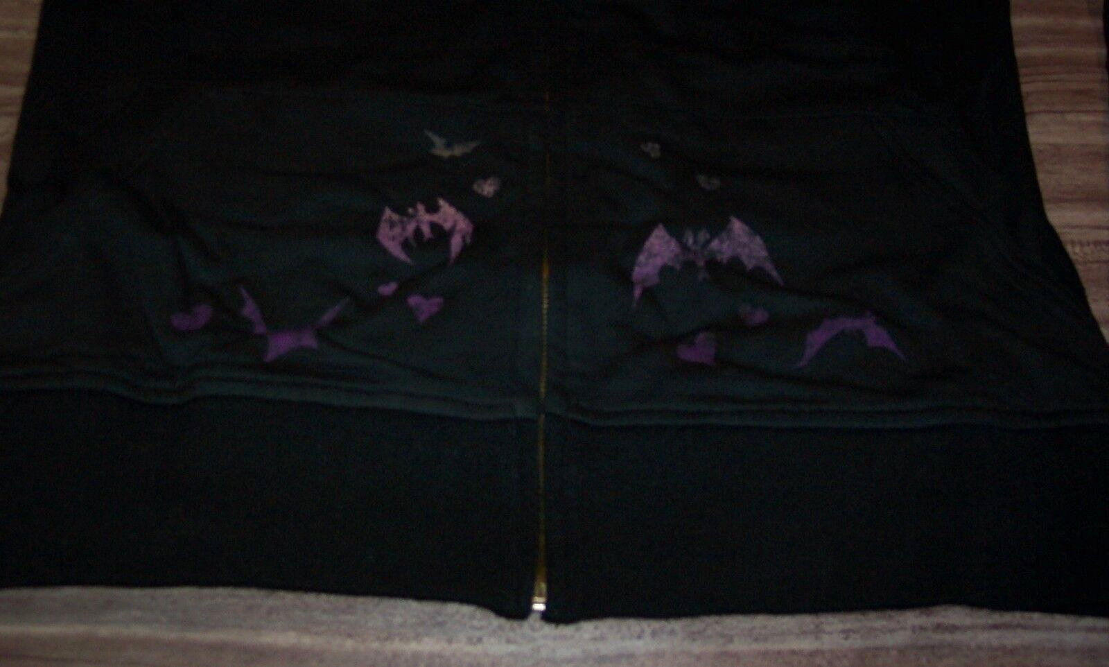 This is a WOMEN'S TEEN Walt Disney Tim The Nightmare Before Christmas Jack and Sally Zipperdown Sweatshirt Jacket. It is a Size SMALL and is NEW with the tag. It is 17 inches from armpit to armpit and 23 inches in length. The print is made to look vintage. It has pockets on the front with bats on them, and Jack and Sally on the back. Combine auctions to save on shipping. D2AG