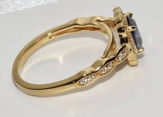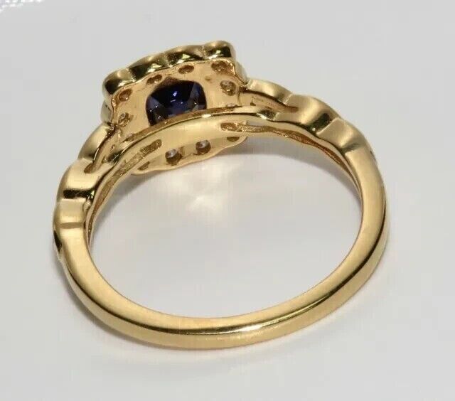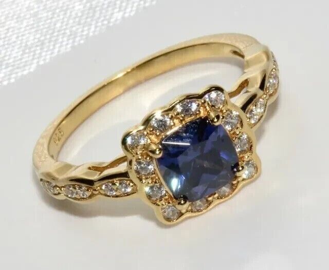 1.50Ct Cushion Cut Lab Created Tanzanite Wedding Ring 14K Yellow Gold Plated