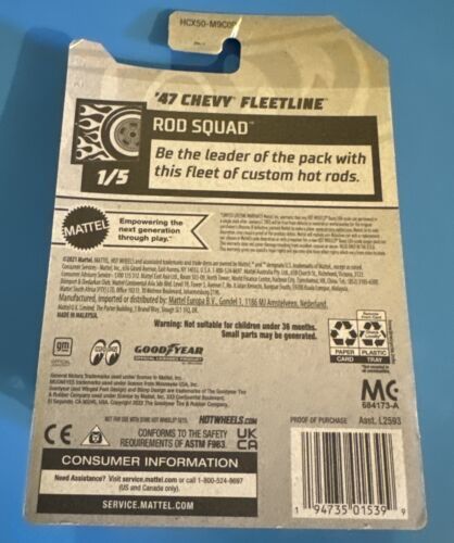 This Hot Wheels car represents the 1947 Chevy Fleetline model and features a multi-color design with Mooneyes theme. The vehicle is part of the Hot Wheels Rod Squad series and is recommended for children aged 3 years and above. This car is perfect for both boys and girls who love to play with or collect diecast cars. Get your hands on this amazing Hot Wheels car today!New old stock. See photos as they are part of the description and show condition. Box/Package may have signs of age,wear, and handling. We do occasionally use stock photos to better show products - however all listings show actual product photos as well to help show condition.