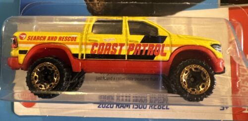 This limited edition Hot Wheels 2020 Ram 1500 Rebel is a must-have for collectors and fans alike. From the HW Rescue series, this 1:64 scale diecast truck comes in a vibrant yellow color and features the coveted Treasure Hunt designation. The unopened box ships securely to ensure its pristine condition upon arrival.