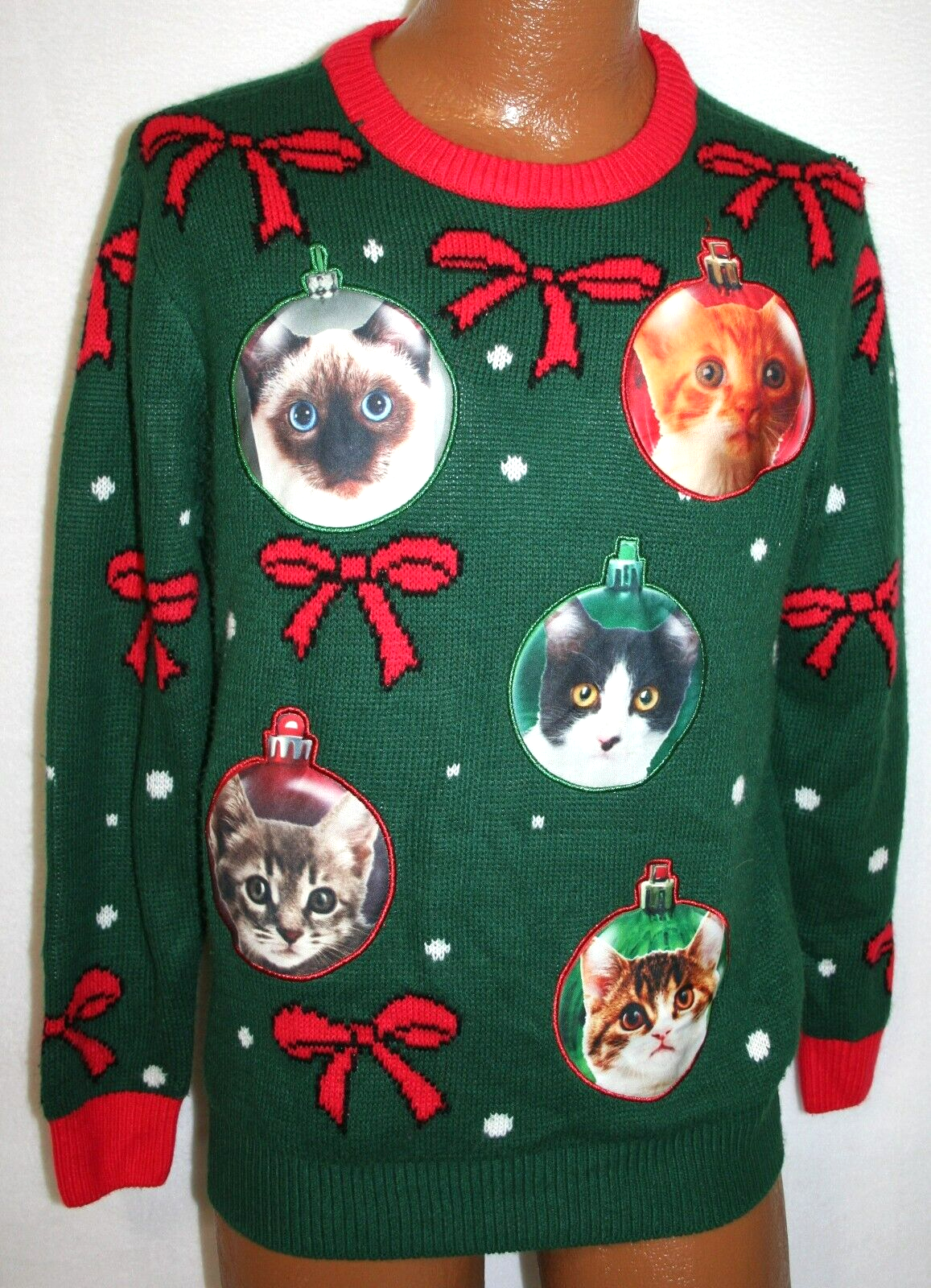 UGLY CHRISTMAS SWEATER Tree Ornaments Cats M Kittens Funny Holiday