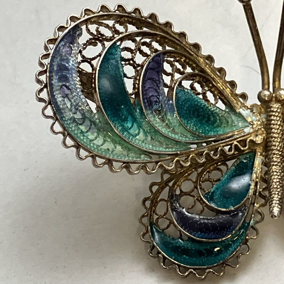 800 Silver Filigree & Enamel Italian Butterfly Brooch Vintage (39 6PL)