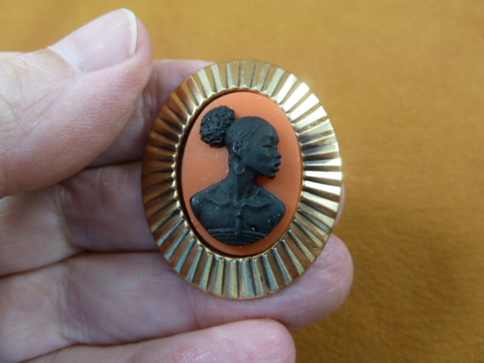 (CA10-131) RARE African American LADY orange + black CAMEO oval Pin Pendant