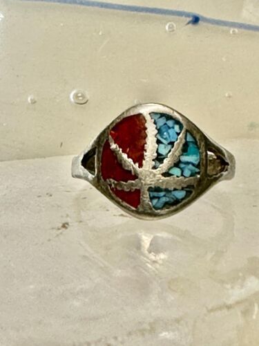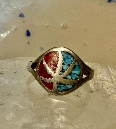 Marijuana leaf ring size 5.75 turquoise chips coral sterling silver women