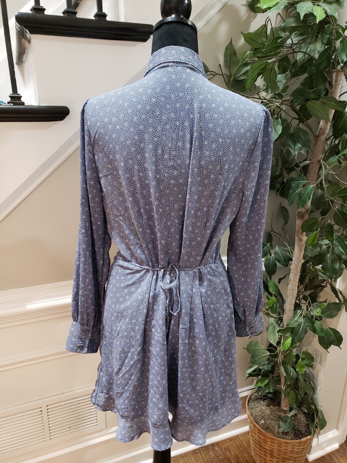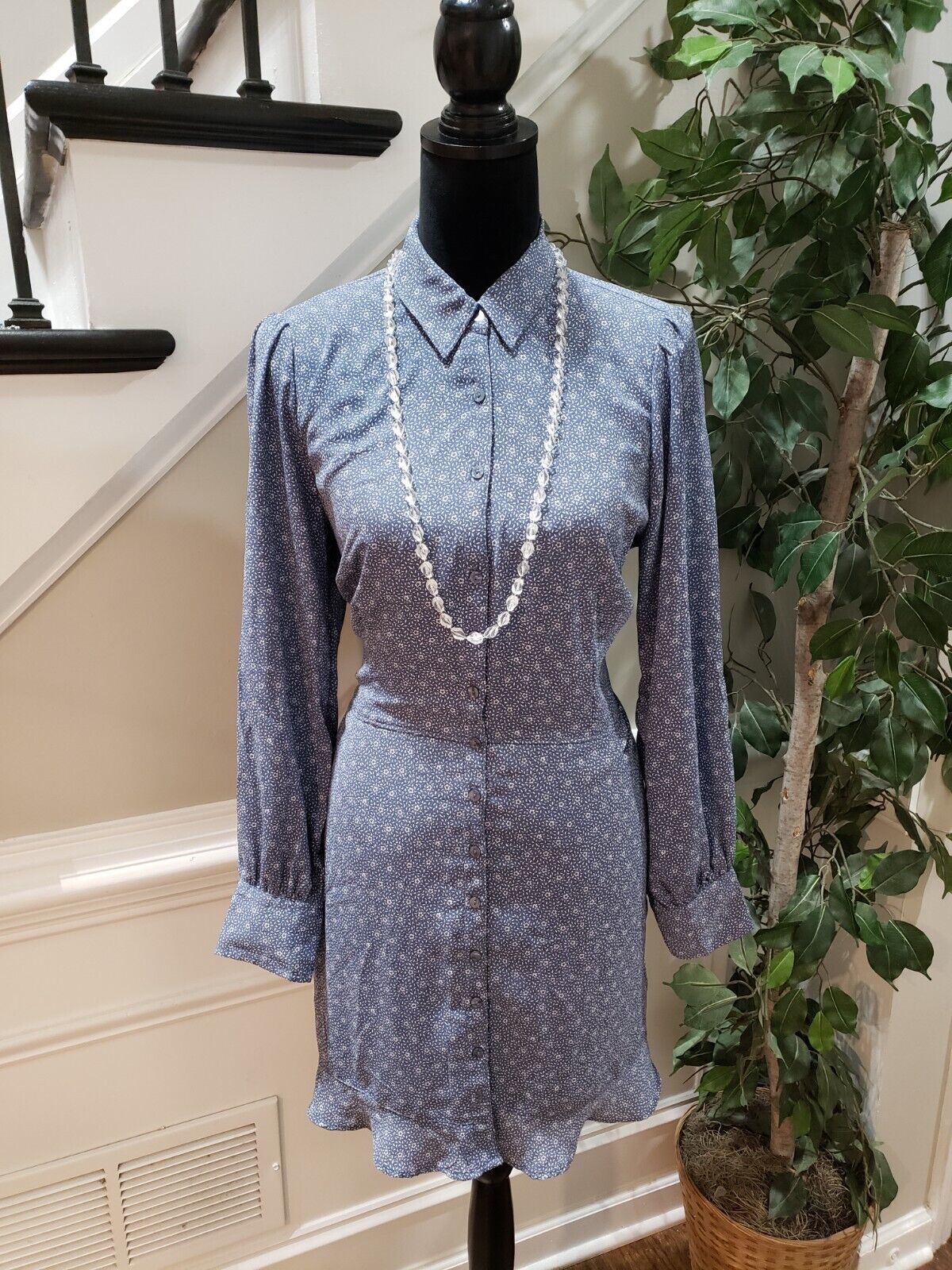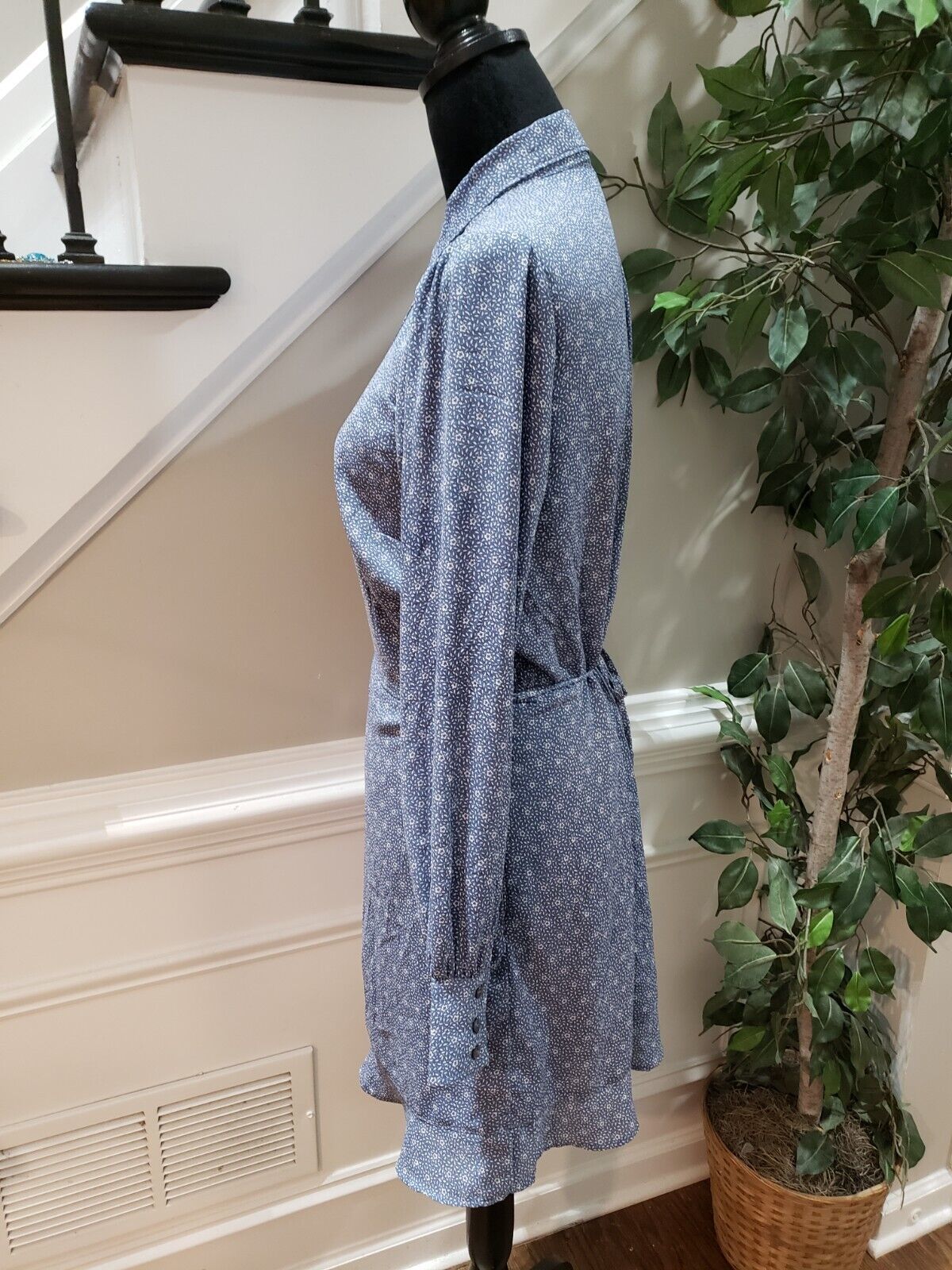 Abercrombie & Fitch Women's Blue 100% Polyester Collared Knee Length Dress Large