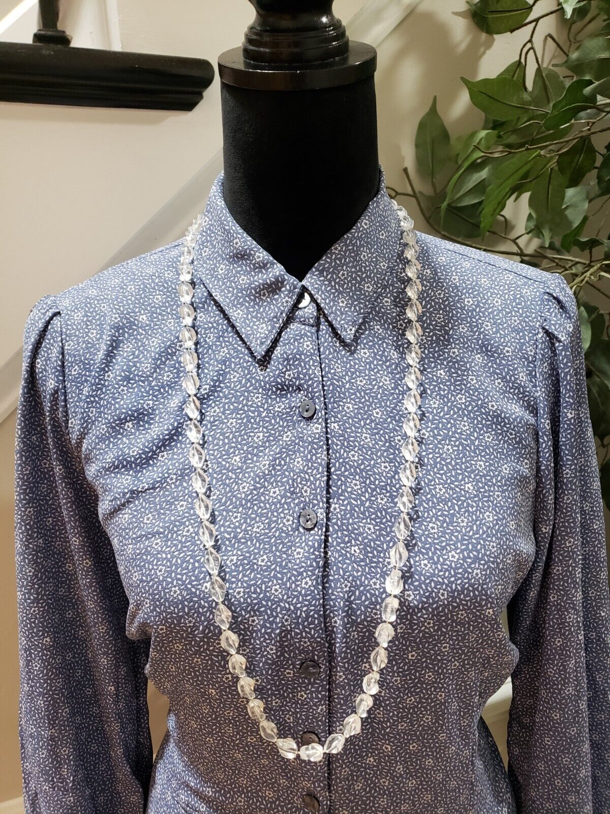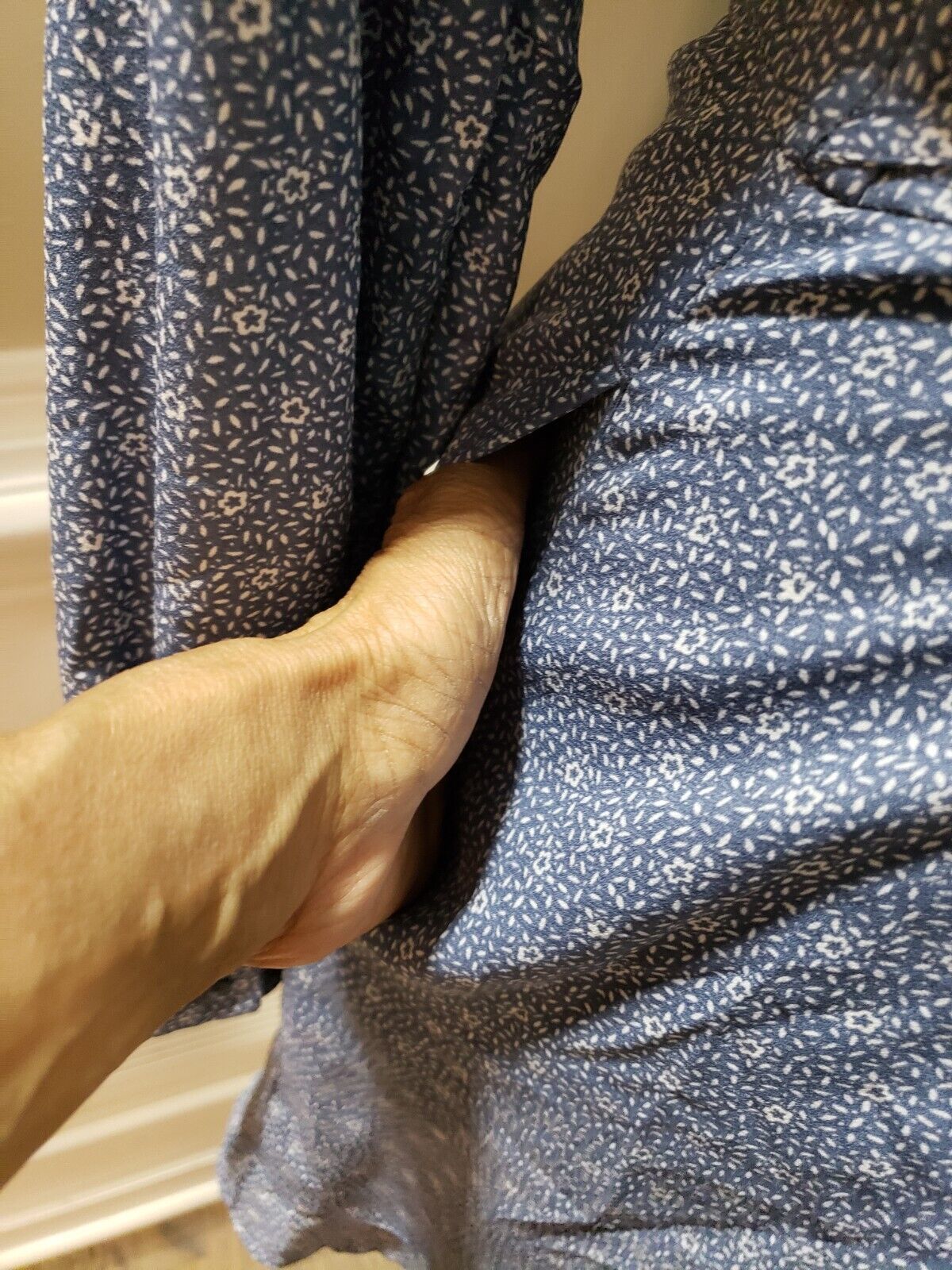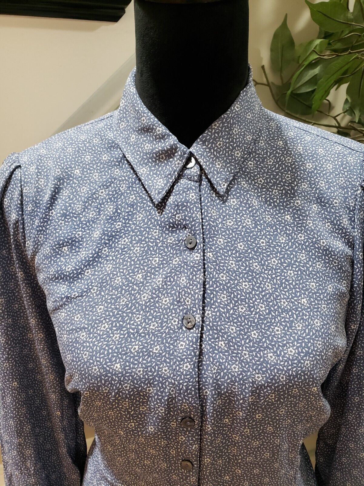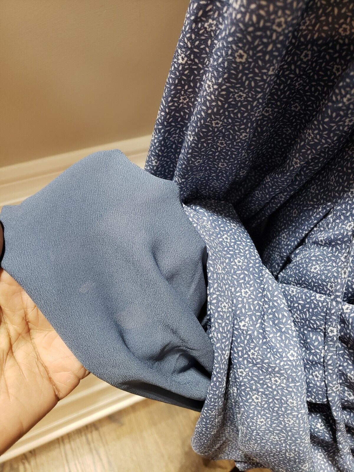Abercrombie & Fitch Women's Blue 100% Polyester Collared Knee Length Dress Large