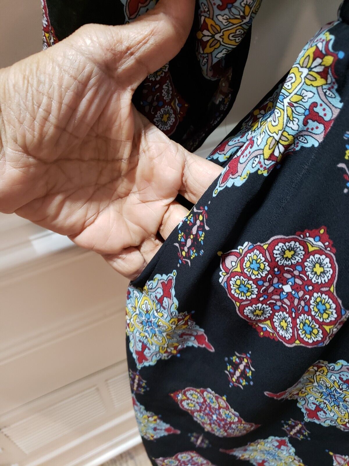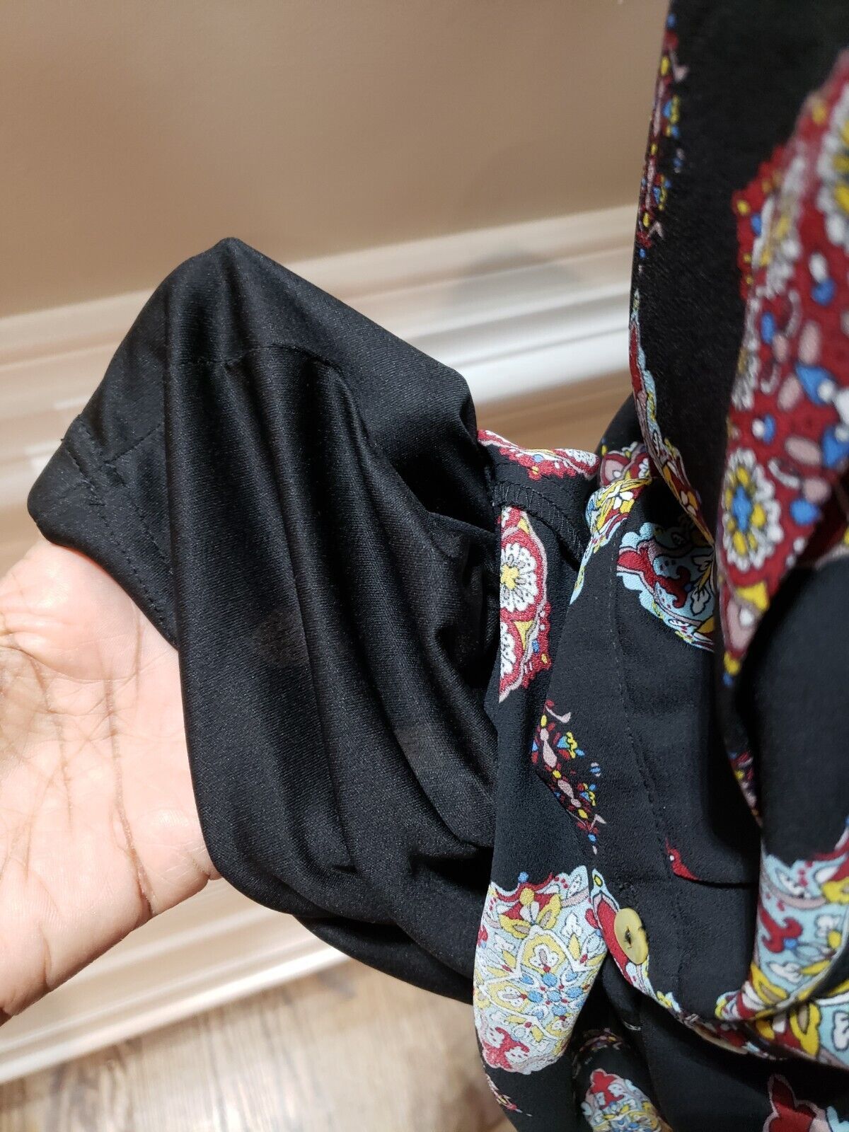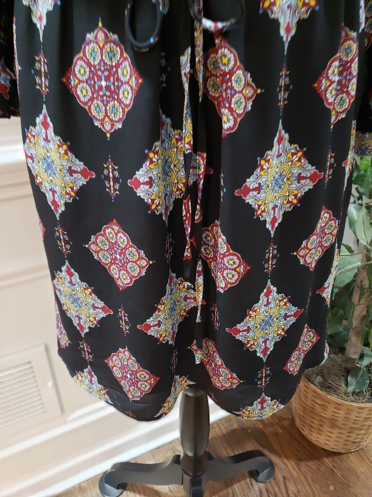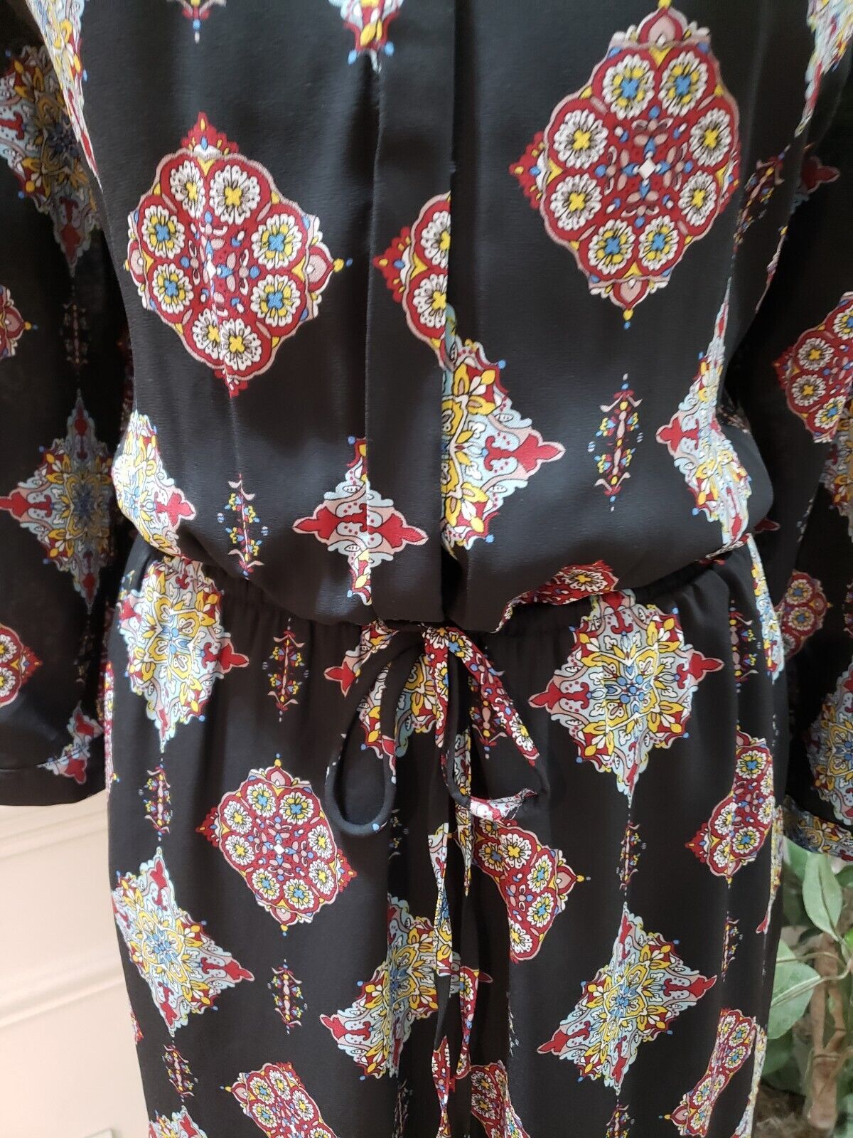 DR2 Women's Black Floral Polyester V Neck Long Sleeve Knee Length Dress Large