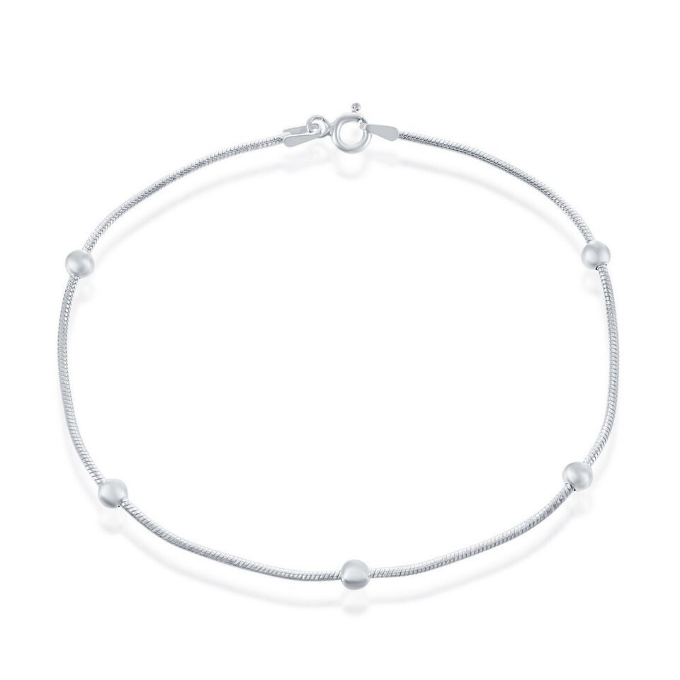 Sterling Silver Snake Chain w/4mm Bead Anklet