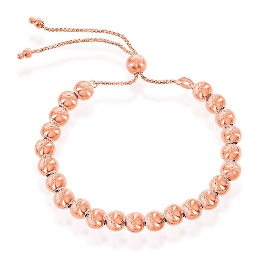 Sterling Silver 6MM Round Beads Adjustable Bolo Bracelet - Rose Gold Plated