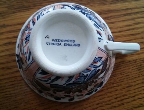 Here today is a vintage Wedgwood Etruria tea cup. Made in England. No saucer is with this cup. Has a P to the right of the name on the bottom. Age is unknown. Has a floral type blue and reddish brown pattern. May be a very super small chip beside the handle but it is hard to see. See photos as they are an important part of the description and will help you know what you are bidding on. I do not accept returns. I do my best to describe all items but Sometimes I miss things so the photos are important. . Please Please ask questions. Thanks for bidding and good luck. Check out all my items for some great finds. Lots of cool stuff at my sales. I can combine shipping on most.