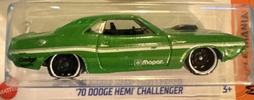 This 2023 Hot Wheels 70 Dodge Hemi Challenger in green color is a must-have for car enthusiasts. It is a 1:64 scale diecast model that comes from Malaysia and belongs to the Hot Wheels Muscle Mania series. The unopened box makes it a perfect addition to any collection or a great gift for boys and girls.