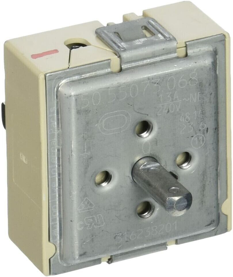 When testing from the inner coil to the outer coil, the switch should have a resistance reading of 19.2 ohms. If there is no resistance, the element has failed and the switch may need replacement. Before installing this part, ensure the range is unplugged or the house circuit breaker for the range is shut off. This Surface Element Control Switch is designed to meet the original specifications. This switch is compatible with select Frigidaire brand models including Crosley, Kelvinator, and Kenmore.