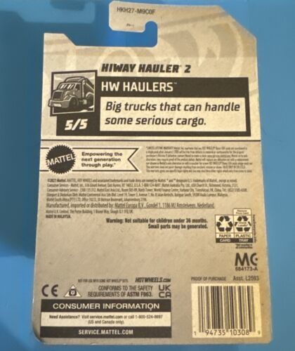 For all the car enthusiasts out there, we have the perfect addition to your collection - the Hot Wheels Hiway Hauler 2 in sleek black color! This diecast model from the HW Haulers series by Hot Wheels is a 1:64 scale replica of the iconic car, featuring intricate details that make it a must-have for any collector.