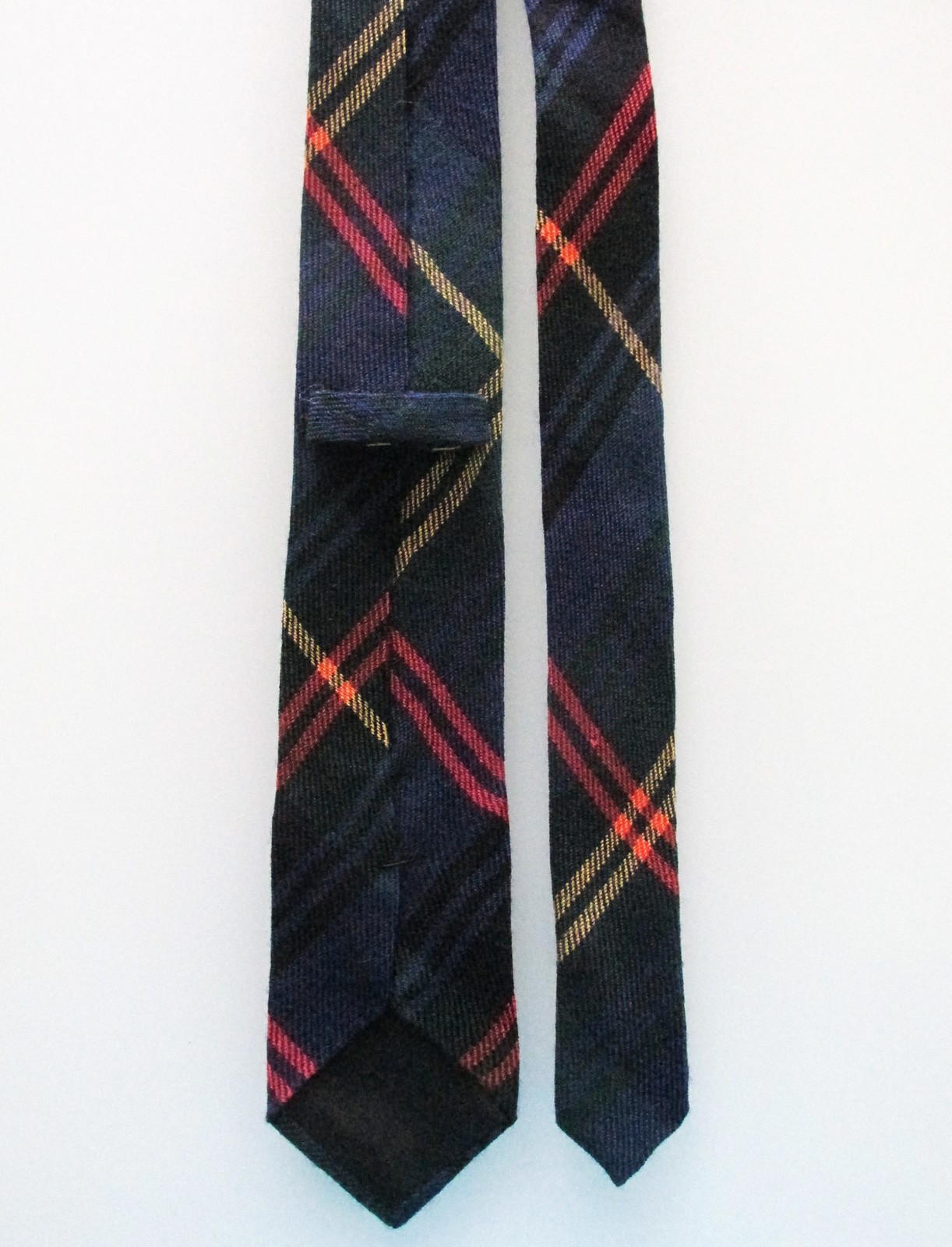 Description: Up for sale is a men's unbranded narrow plaid wool tie. It is made of 100% wool with a cashmere feel. Dimensions are approximately 57" long x 2.90" wide. It has a multicolored tartan plaid pattern in purple, red, yellow, green black. Please see the photos for a more accurate depiction of colors and design. This tie is in excellent condition.