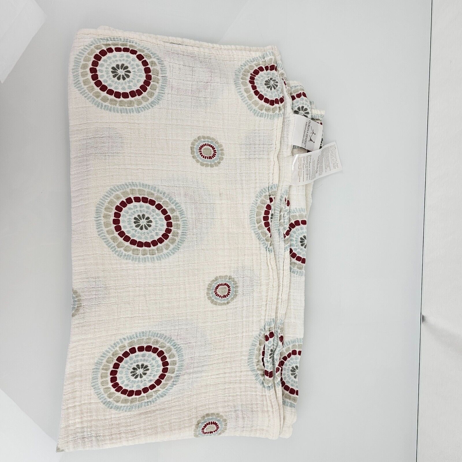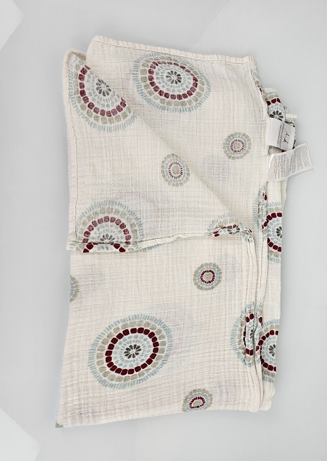 Aden + Anais Muslin Blanket Swaddle Cotton Teal Blue Red Grey Circles Medallions