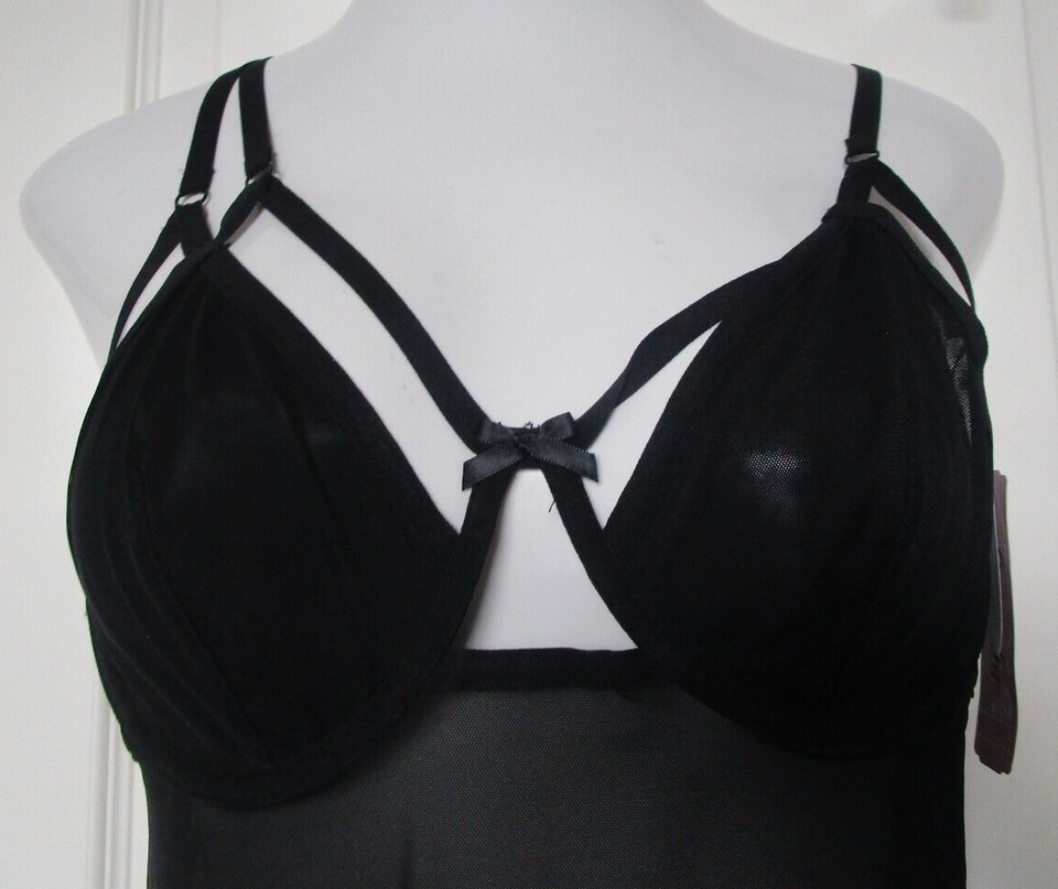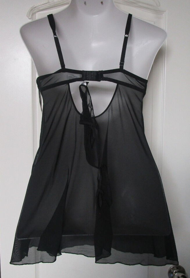 Cassandra Two piece Black Sheer Chemise with Thong size Large
