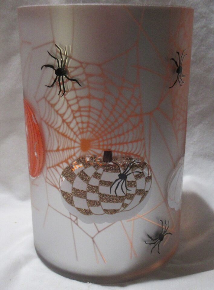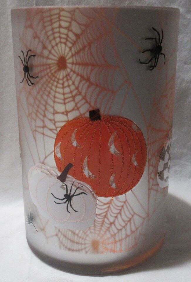 Yankee Candle Frosted Large Jar Holder J/H Halloween FLICKER SPIDER PUMPKIN
