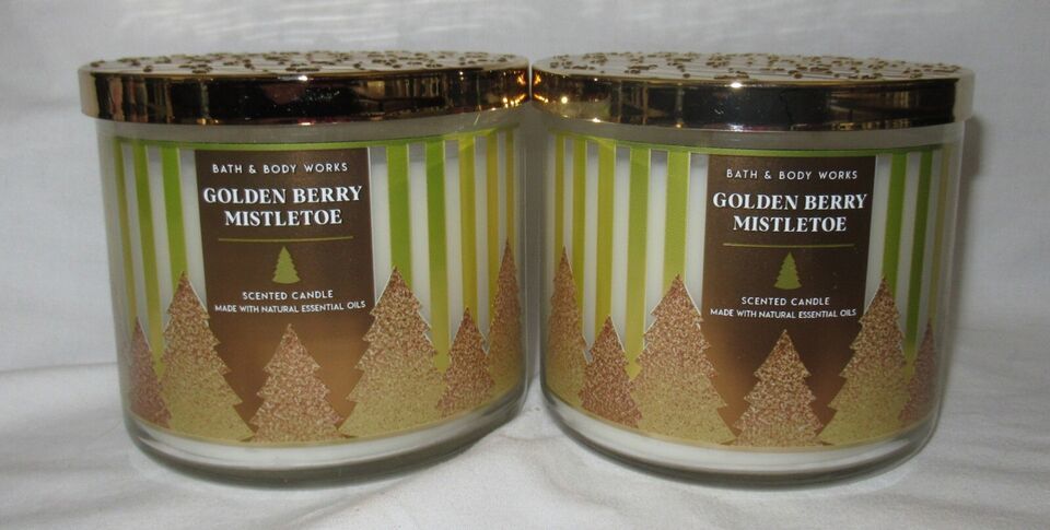 Bath & Body Works 3-wick Scented Candle Set Lot of 2 GOLDEN BERRY MISTLETOE