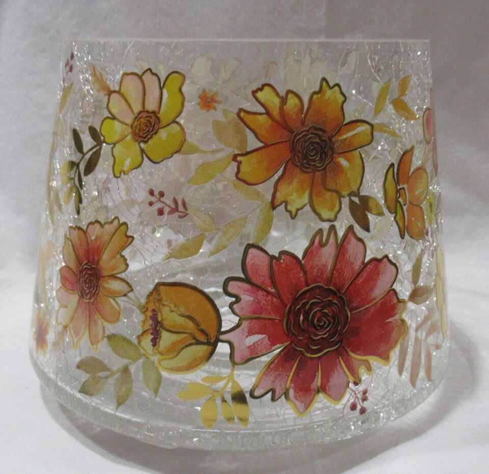 Yankee Candle Jar Shade J/S Clear Crackle Glass TRANSITIONAL FLORAL fall colors