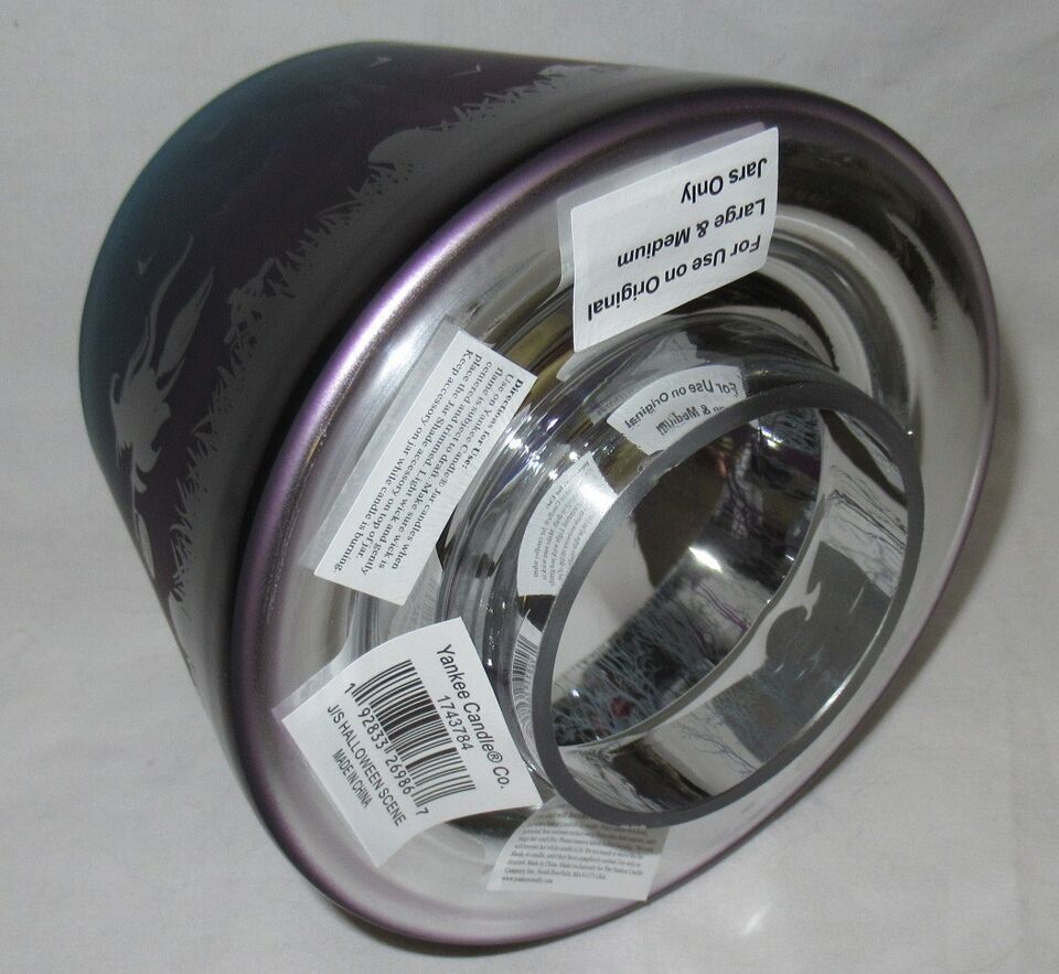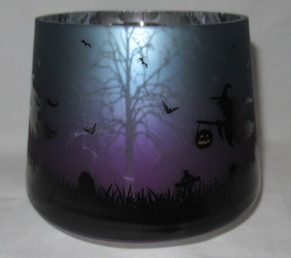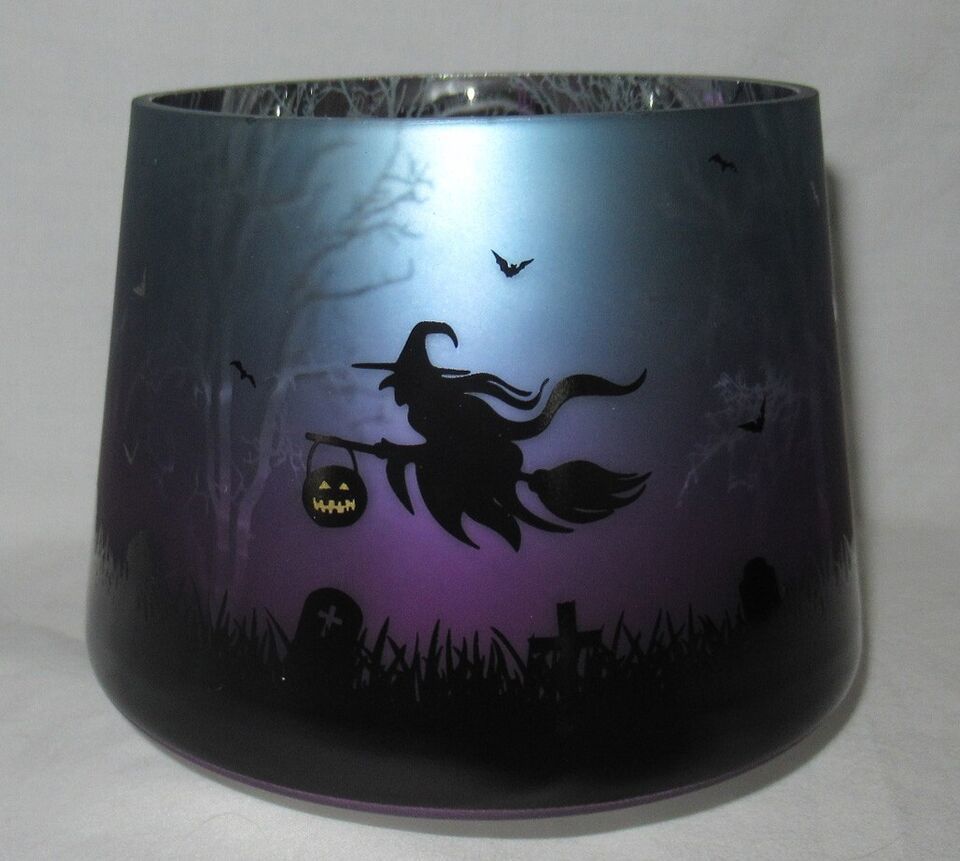 Yankee Candle Jar Shade J/S Mirror Glass HALLOWEEN SCENE WITCHES on Broom purple