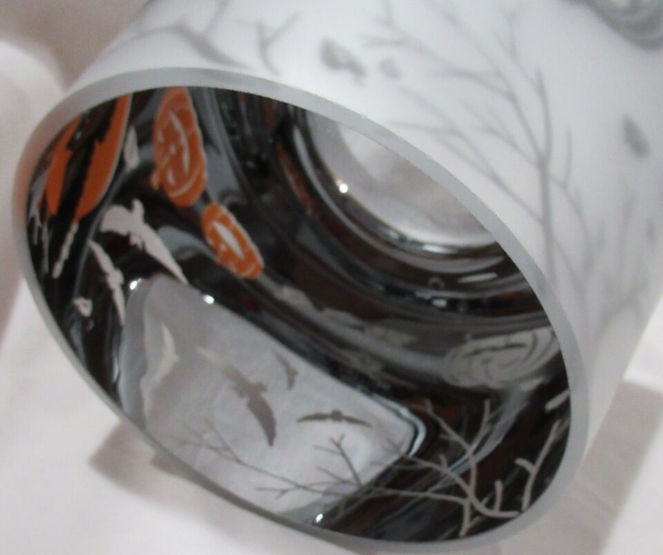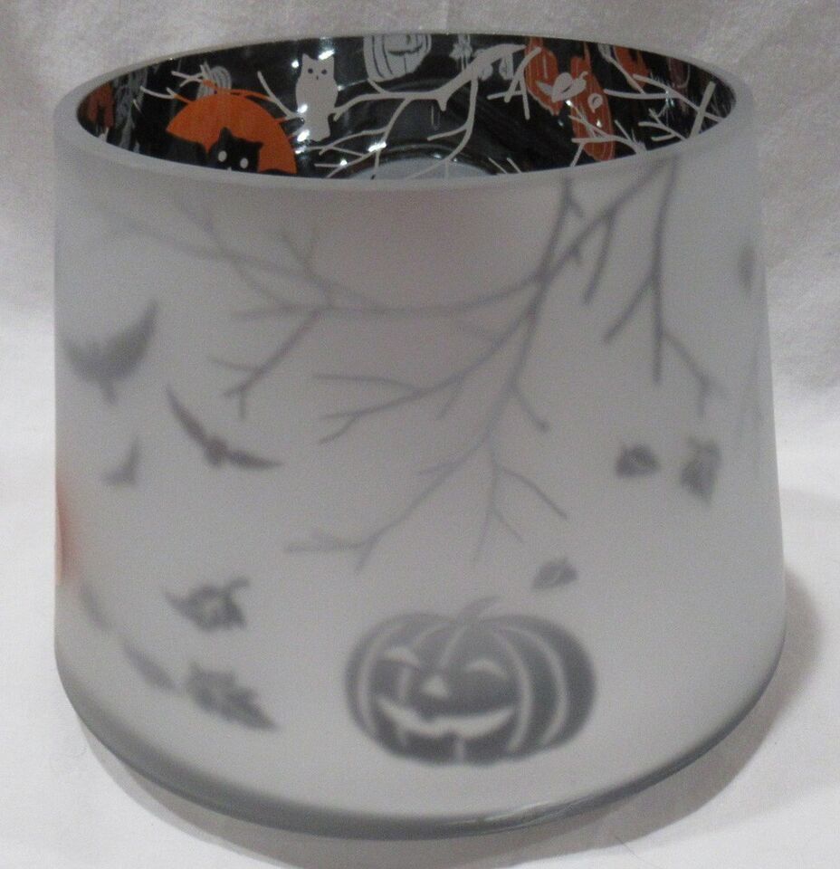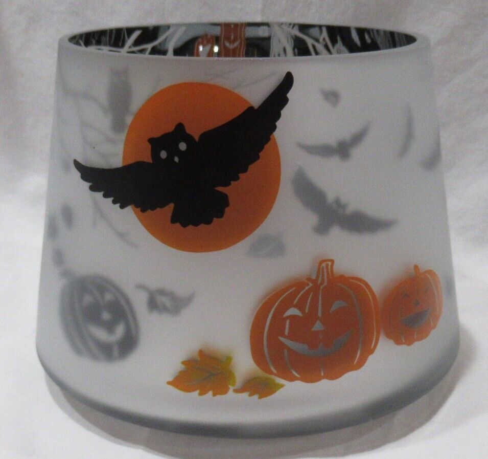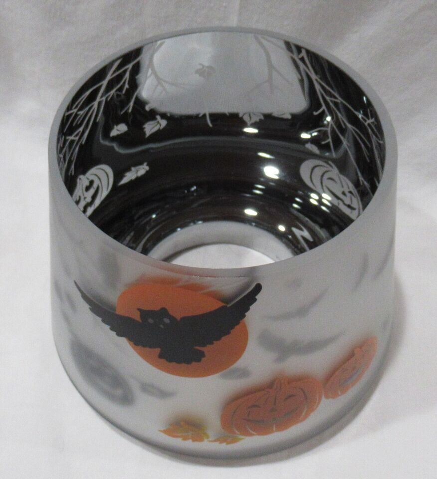 Yankee Candle Frosted Mirrored Jar Shade J/S Halloween OWL PUMPKIN silver orange