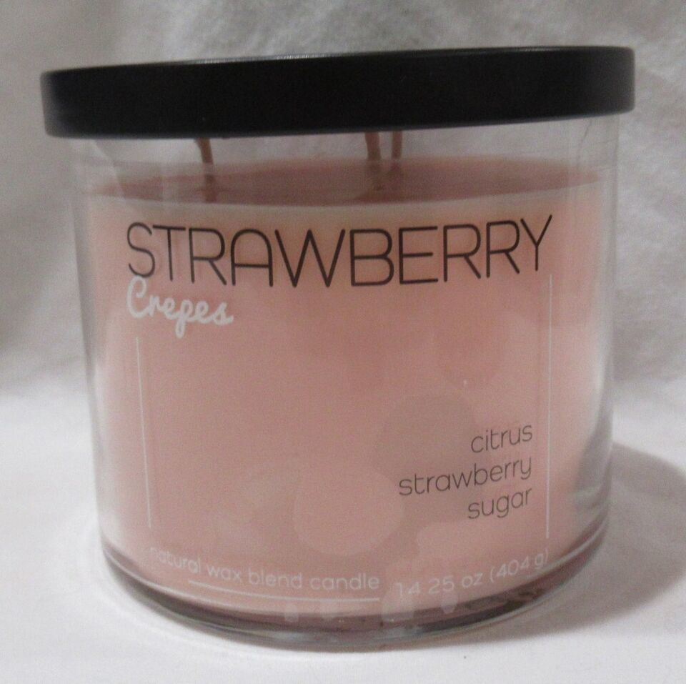 Kirkland's 14.25 oz Jar 3-Wick Candle up to 40 hours STRAWBERRY CREPES
