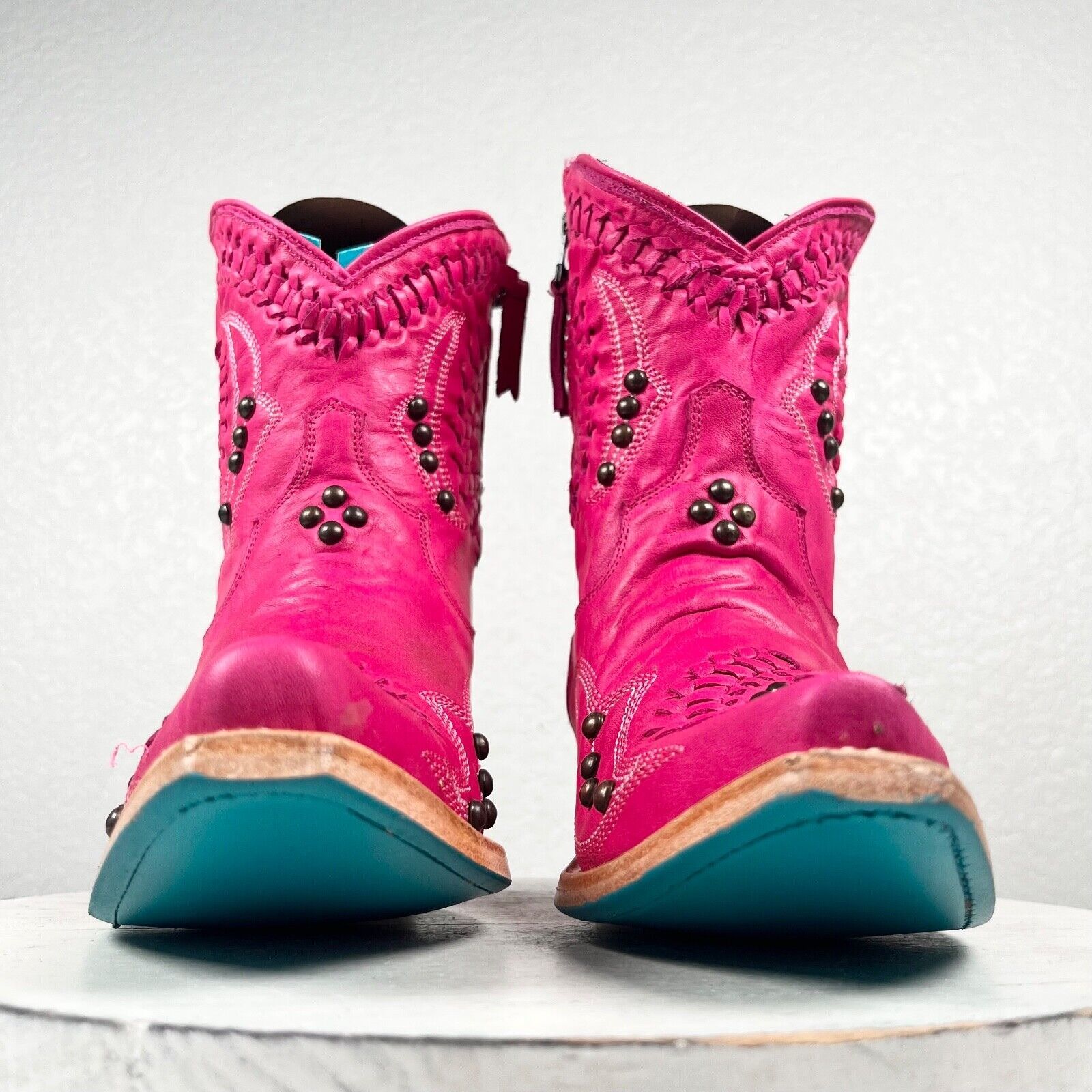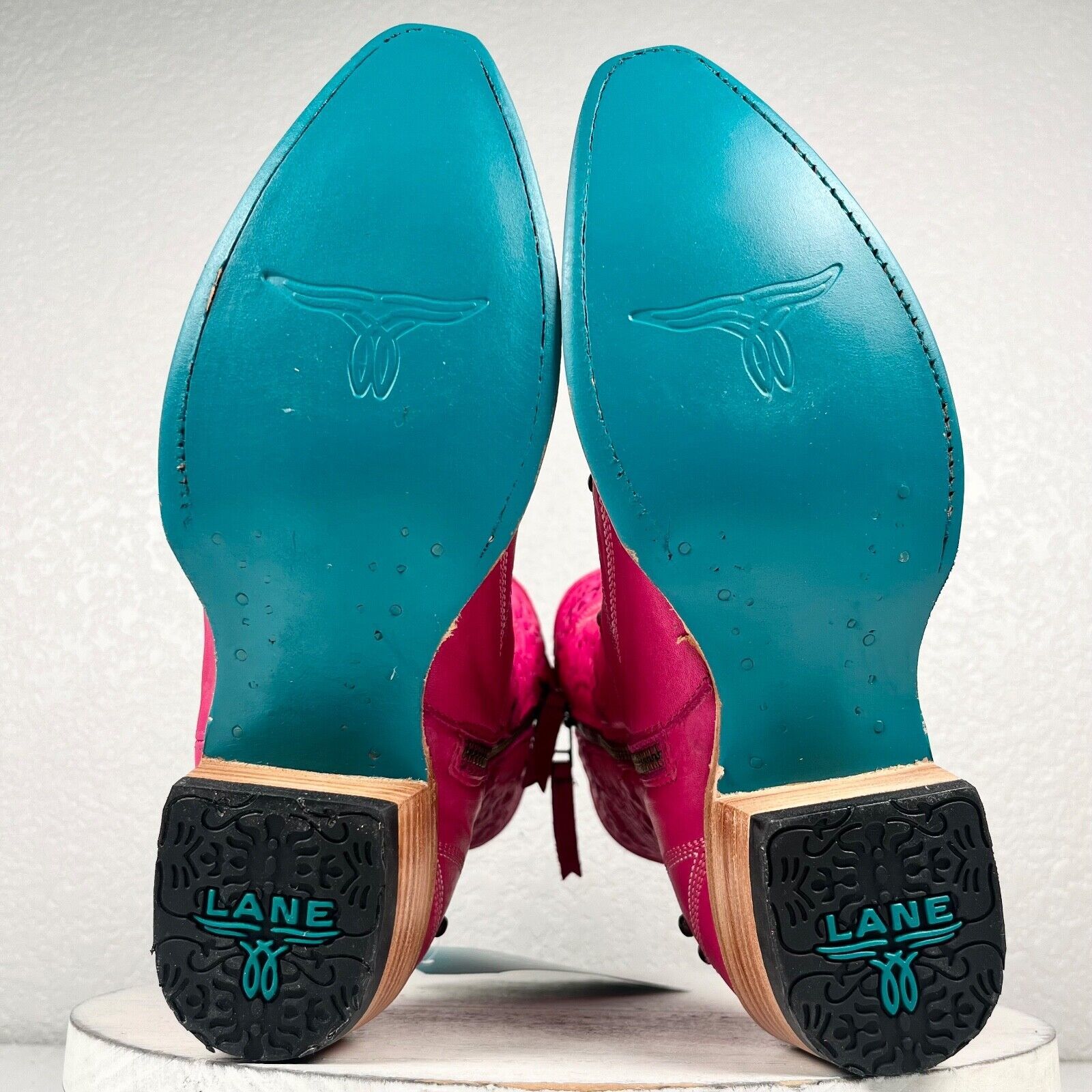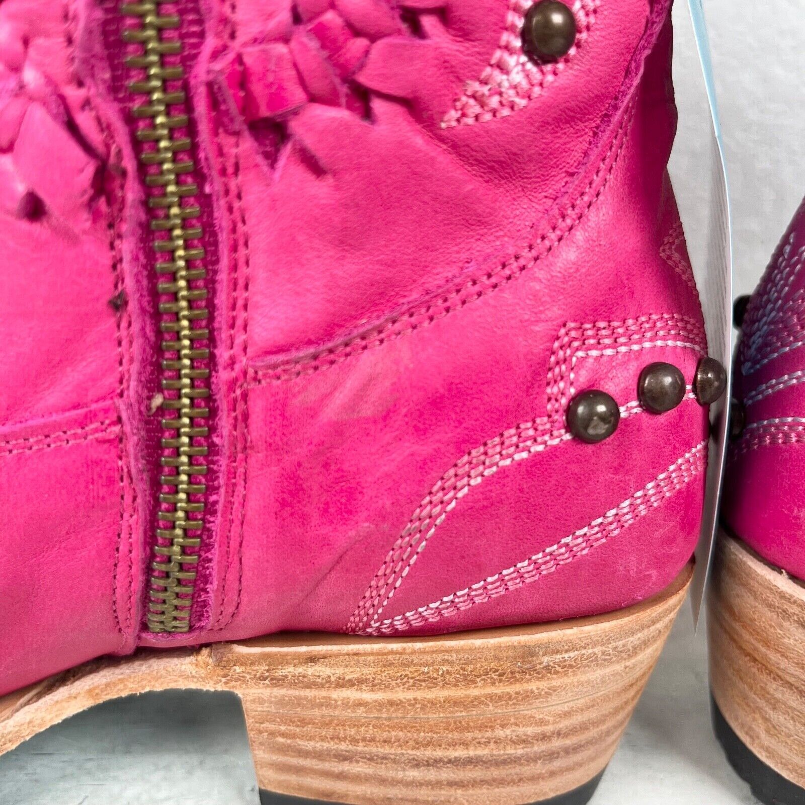 Lane COSSETTE Hot Pink Cowboy Boots Womens 9.5 Ankle Leather Western Snip Toe