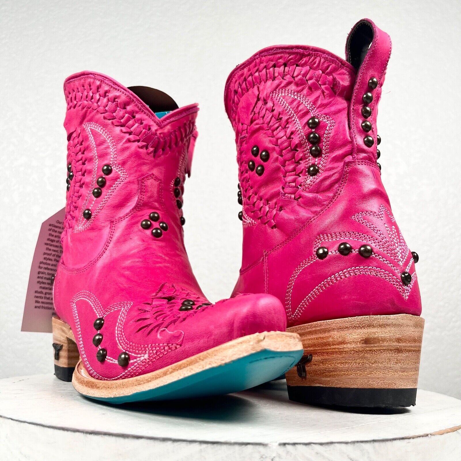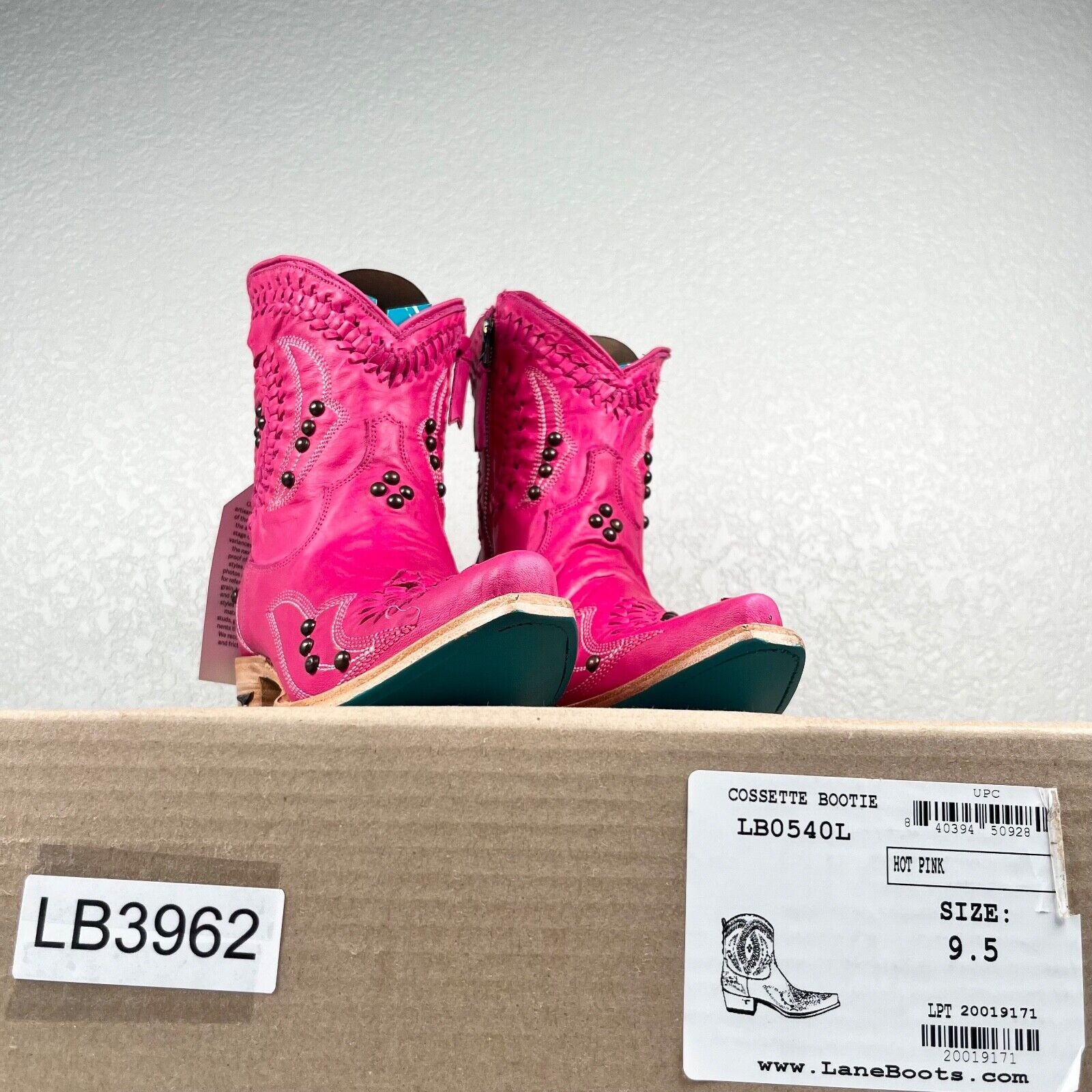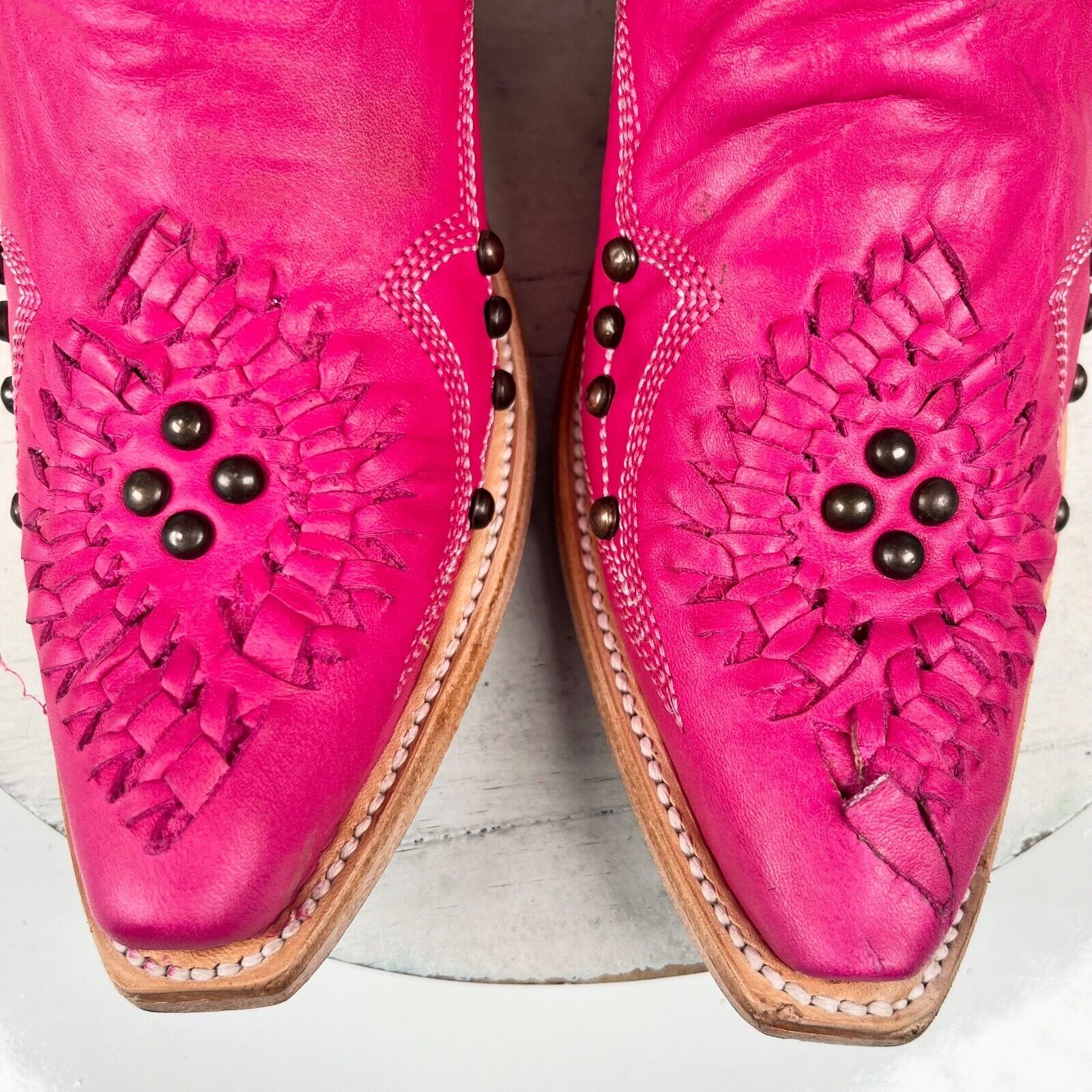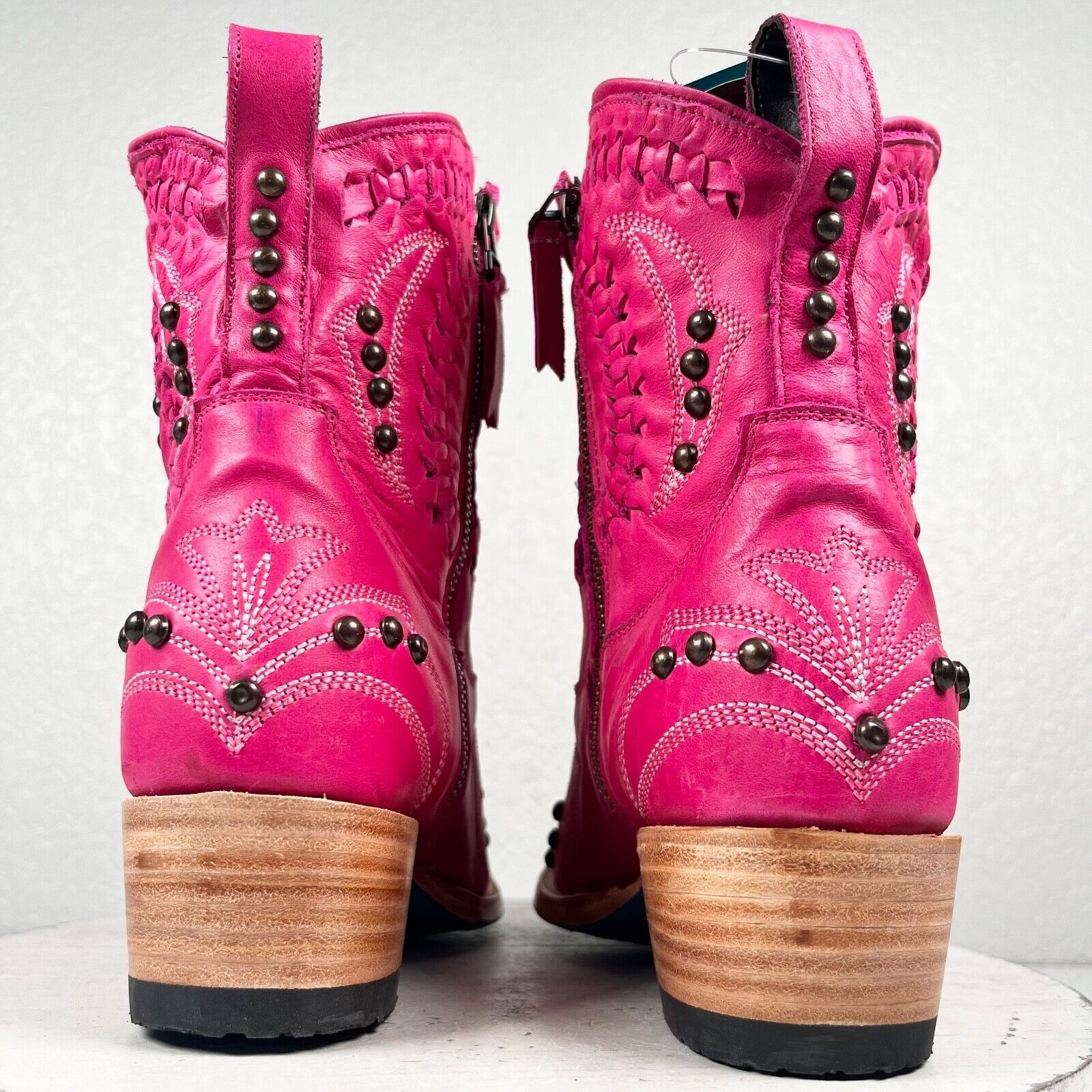 Lane COSSETTE Hot Pink Cowboy Boots Womens 9.5 Ankle Leather Western Snip Toe