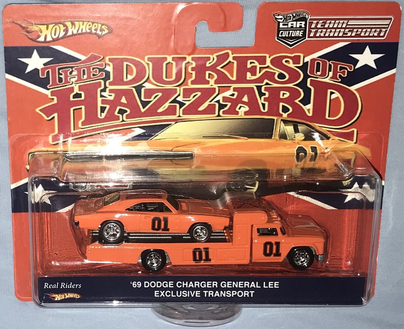 Custom Hot Wheels Team Transport "Dukes of Hazzard" Dodge Charger Custom-Made with Real Rider Rubber Wheels 1:64 Scale Collectible Die Cast Model Car. General Lee Dukes of Hazzard Series.