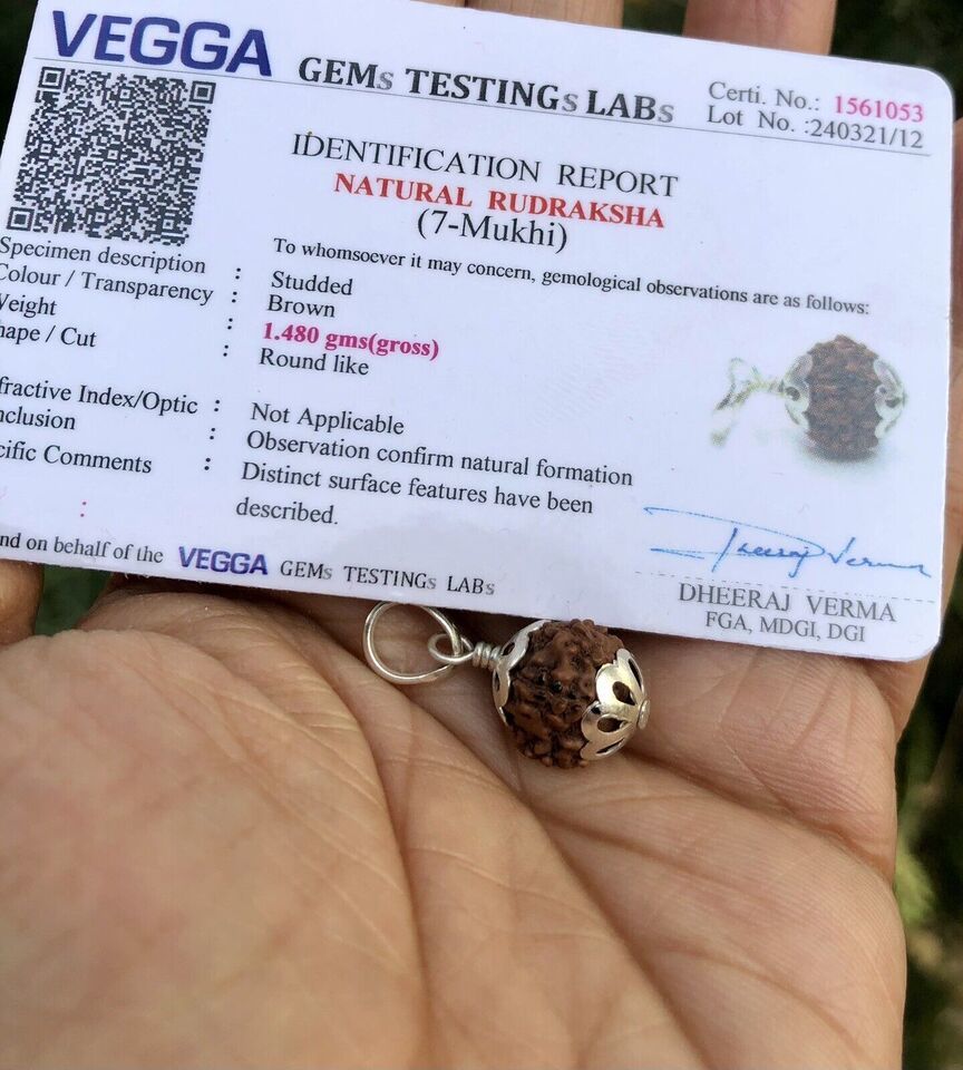 Laborzertifiziertes 925er Silber + 7 Mukhi RUDRAKSHA Panchmukhi Rudraksh...