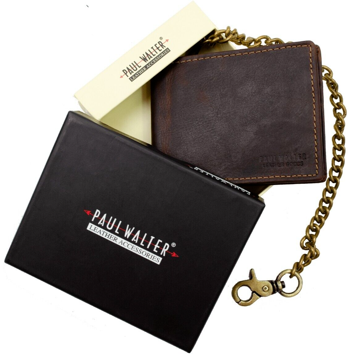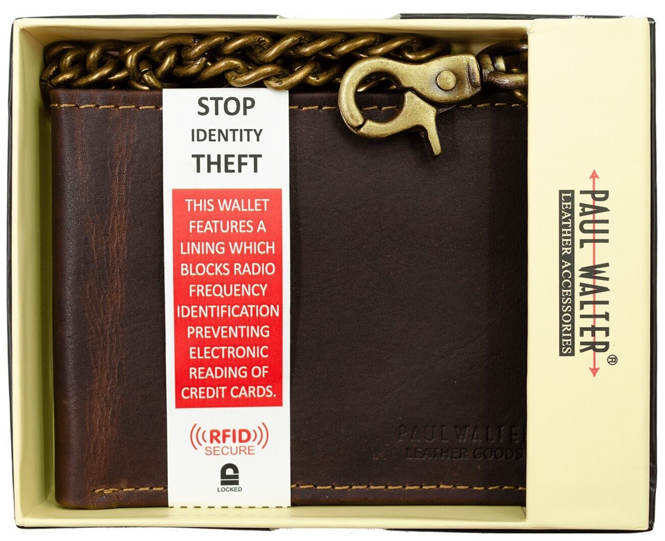 Paul Walter - Men's Genuine Hunter Leather Biker Long Chain Bifold Wallet with RFID Blocking