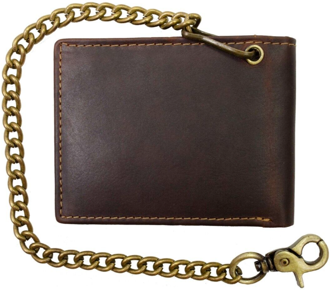 Men's Genuine Hunter Leather Biker Long Chain Wallet with RFID Blocking Bifold