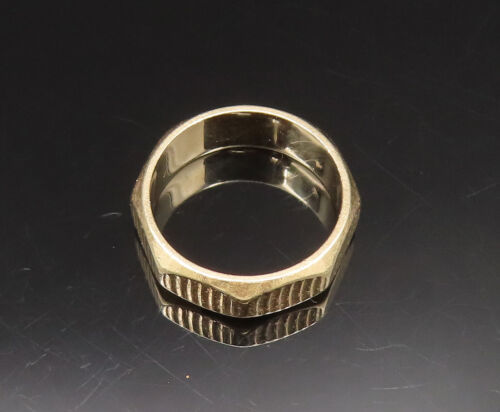 14K GOLD - Vintage Victorian Linear Textured Hexagon Band Ring Sz 6 - GR420