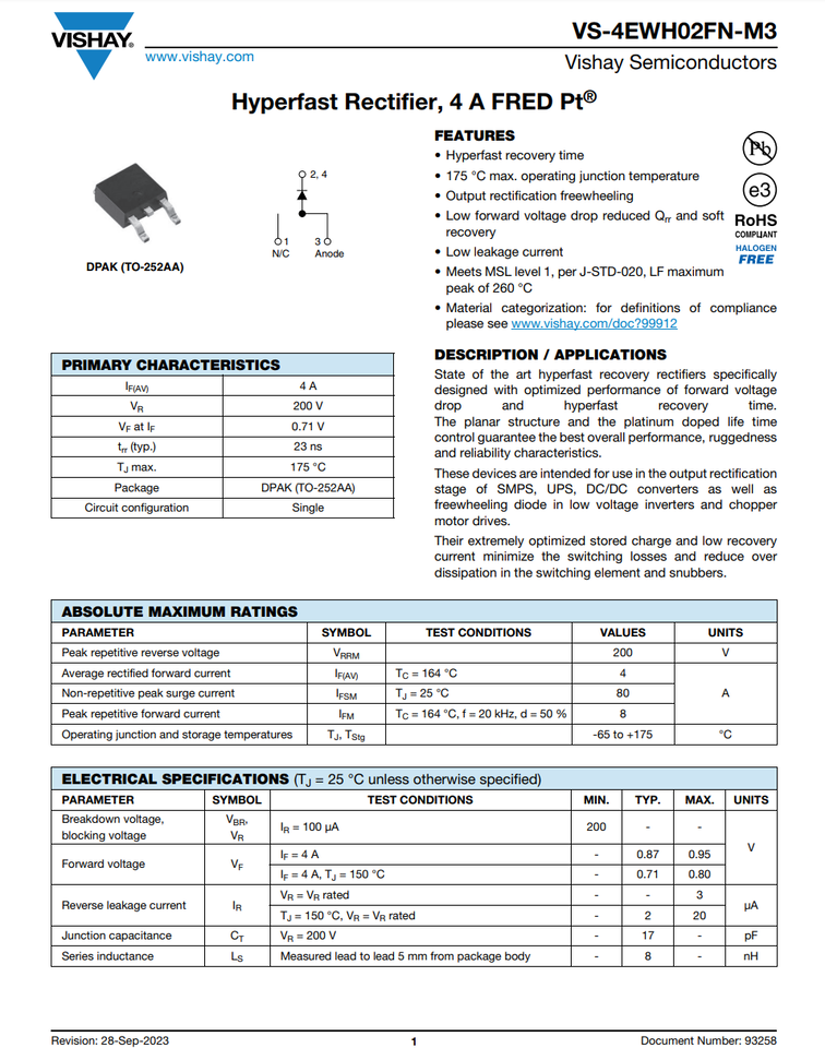 VS-4EWH02FN-M3 VISHAY Diode 200V 4A D-PAK (TO-252AA)