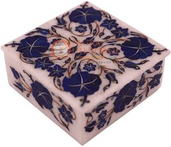 4"x4"x2" White Jewelry Organizer Box Lapis Marquetry Flower Art Christmas Gift