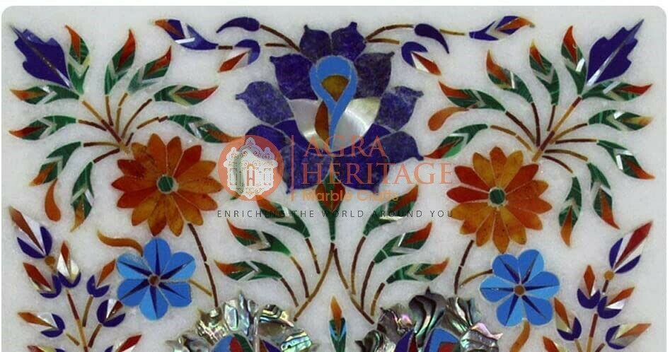 Most interesting expect of this pietre dure( marble inlay with hard stone) all the designs are made by the artisans are purely an imagination of artist once made they cannot make another one exactly the same it will look similar but will not be the same.