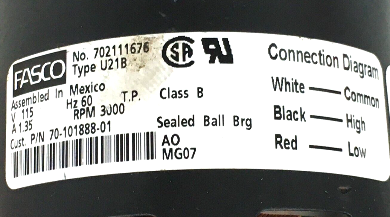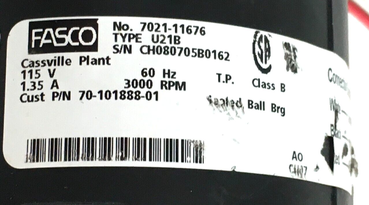This is FASCO 702111676 U21B Draft Inducer Blower Motor Assembly 70-101888-01 115V 3000RPM used part.
