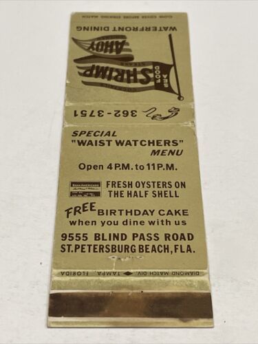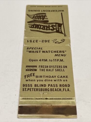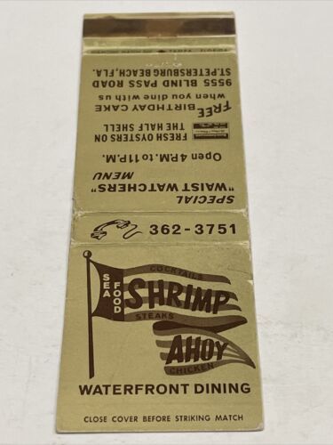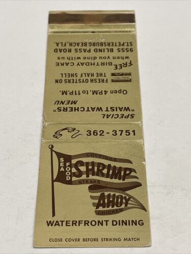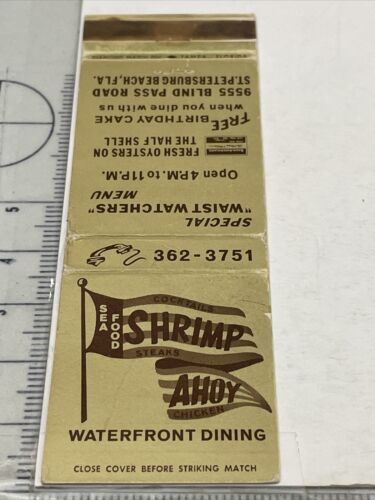 Matchbook Cover Shrimp Ahoy Waterfront Dining ST Petersburg Beach, FL gmg