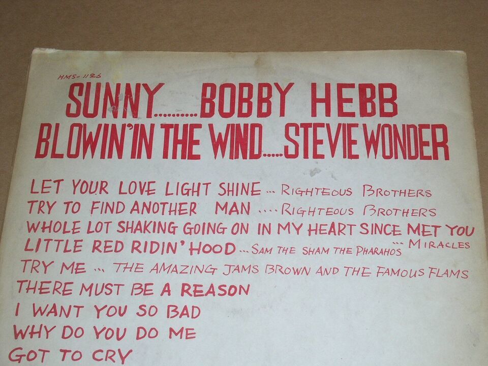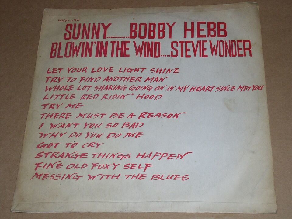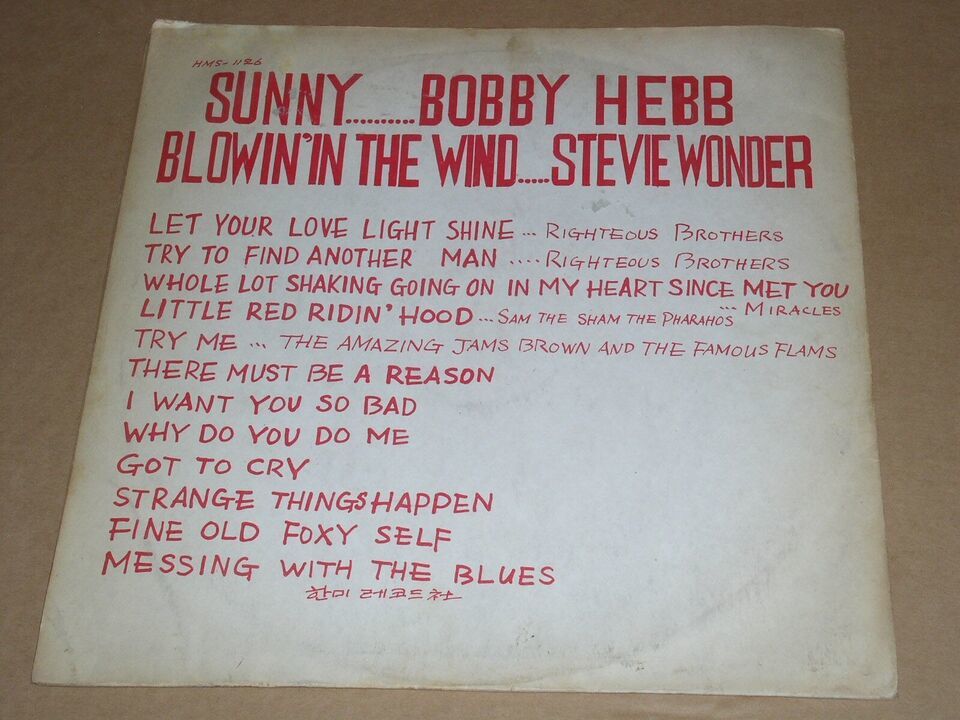 This is a vintage phonograph record album by various artists, entitled, "Sunny...Bobby Hebb Blowin' In The Wind...Stevie Wonder". Record label: Hanmi Record Co HMS 1126.